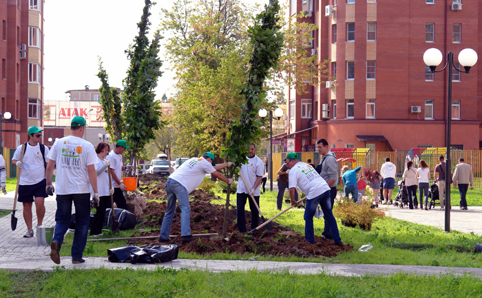 С большим удовольствием к ним присоединились горожане — школьники, молодые семьи с детьми, пенсионеры. На 46 площадках наукограда в общей сложности было высажено около 1700 зеленых насаждений — деревьев и кустарников, многие — ценных пород: дубы, туи, можжевельники, кедры. В детских садах и школах в числе прочих высаживали липы, кусты спиреи, жасмина и сирени. Всю организацию акции взяла на себя администрация города — был закуплен новенький инвентарь: лопаты, грабли, ведра и лейки, а также грунт и посадочный материал. Самыми масштабными площадками в городе стали аллея по улице Лесной и микрорайон № 4 (около стадиона).