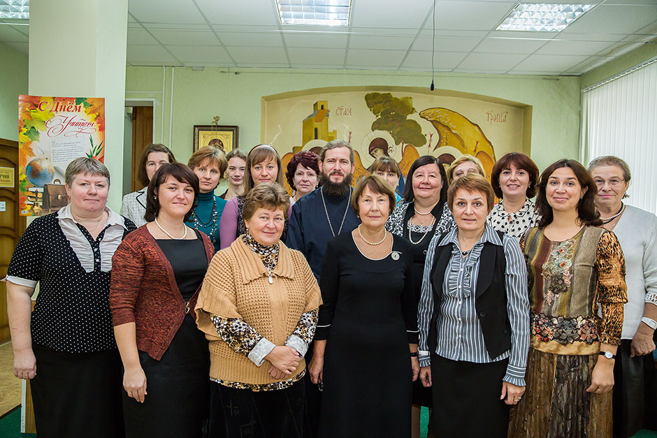 Продолжением праздничного дня был концерт. С праздником Дня учителя преподавателей и ребят поздравил духовник гимназии священник Максим Алифанов и заместитель директора по учебно-воспитательной работе Лыгина Анна Викторовна. Учащиеся в подарок учителям преподнесли букет песен, стихов, танцев и музыкальных поздравлений. Концерт сопровождался мультимедийной презентацией из истории о жизни гимназии, радостных и счастливых моментах, праздниках, уроках и других событиях. Учащиеся от души желали учителям успехов в нелегком труде, терпения, счастья и здоровья.
