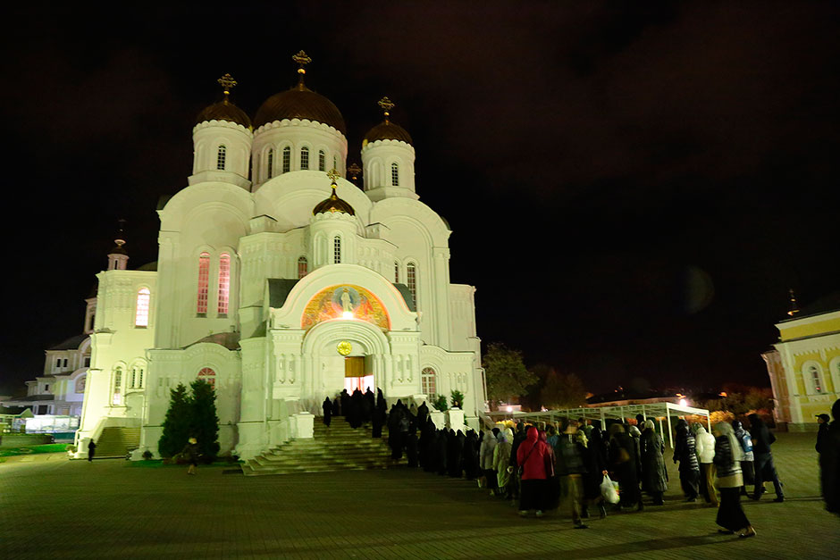 Искупавшись в источнике преподобного Серафима Саровского в Сатисе, к вечеру разместились в гостеприимном Доме паломника в Дивеевском монастыре. Некоторые из паломников были в Дивеево в первый раз, и конечно, удивлялись особой красоте и благодатной молитвенной тишине этого места. Но и те из нас, кто бывает в Дивеево регулярно, были приятно удивлены выросшему буквально на глазах за два года Благовещенскому храму. Он построен по завету прп. Серафима Саровского. Сейчас завершается работа по внешней отделке храма. Продолжается благоустройство территории монастыря, в Троицком соборе идут восстановительно-ремонтные работы, поэтому мощи батюшки Серафима сейчас находятся в Преображенском соборе. Паломники посещали монастырские богослужения, побывали на акафисте преподобному Серафиму Саровскому, молились и причащались на Божественной литургии, совершали Богородичное правило на канавке Божией Матери.