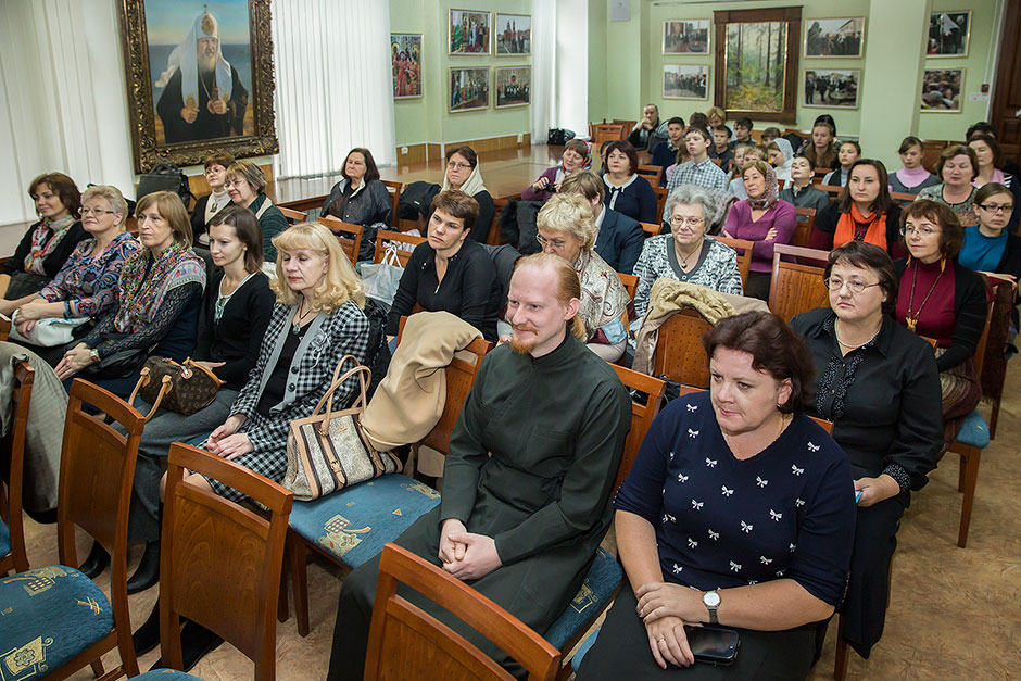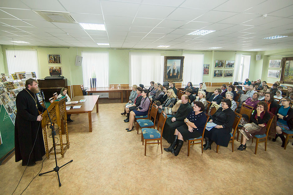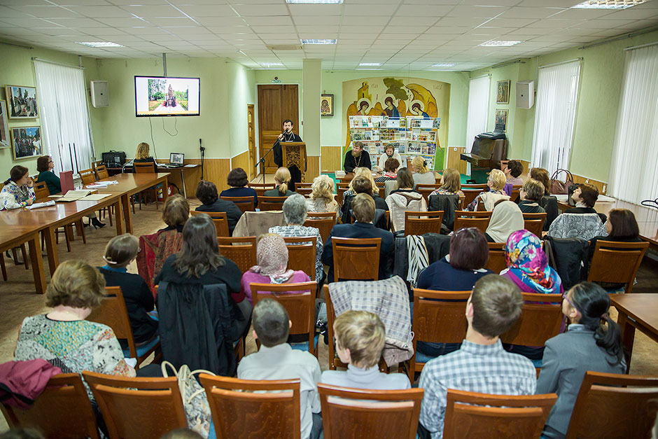 После окончания чтений педагоги и библиотекари, сотрудники краеведческого музея и священники смогли познакомиться с публикациями статей, посвященных празднованию 700-летнего юбилея прп. Сергия Радонежского в Московской области, в журнале «Подмосковный летописец»; о подготовке этого номера рассказала сотрудник редакции Н.В. Рыбалко.