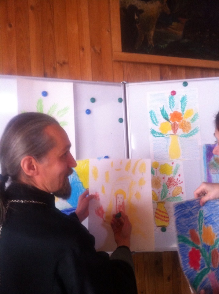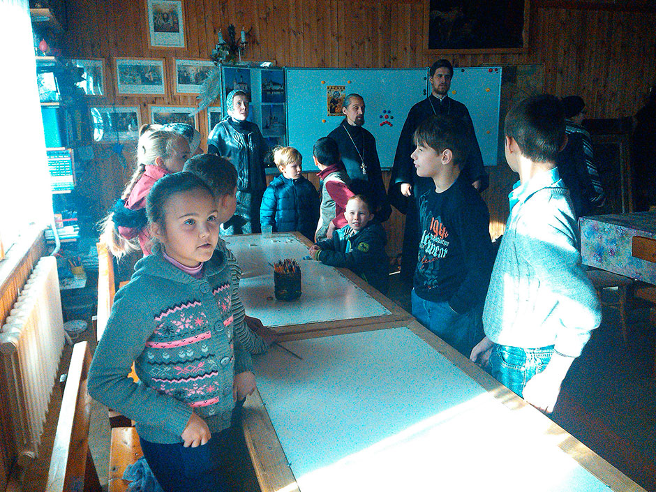 26 октября Сергиевскую Церковь д. Алмазово посетили воспитанники расположенной неподалеку Алмазовской школы-интерната. На Божественной литургии ребята исповедовались и причащались Святых Христовых Таин, а затем вместе с учениками воскресной школы приняли участие в открытом уроке. Занятие было посвящено празднику Иверской иконы Божией Матери. Учительница побеседовала с ребятами о событиях, связанных с этой иконой. На занятии присутствовал настоятель храма священник Илия Плешаков и клирик храма священник Кирилл Серышев. Они побеседовали с ребятами и похвалили их за интересные рисунки. Каждый получил в подарок книжки-раскраски. По окончании занятия беседа продолжилась за чашкой чая.
