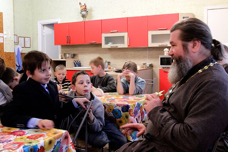 14 октября 2014 года прихожане Гребневского храма сельского поселения Гребнево вместе со священником Александром Кудрявцевым посетили социально-реабилитационный центр для несовершеннолетних «Теплый дом». В уютной столовой за чашкой чая дети беседовали со священником Александром о празднике Покрова Пресвятой Богородицы. Отец Александр рассказал детям историю праздника и вручил каждому небольшие подарки, и общий подарок – настольную игру. Затем разговор коснулся жизненно важных вещей: взаимопомощи и дружбы.
