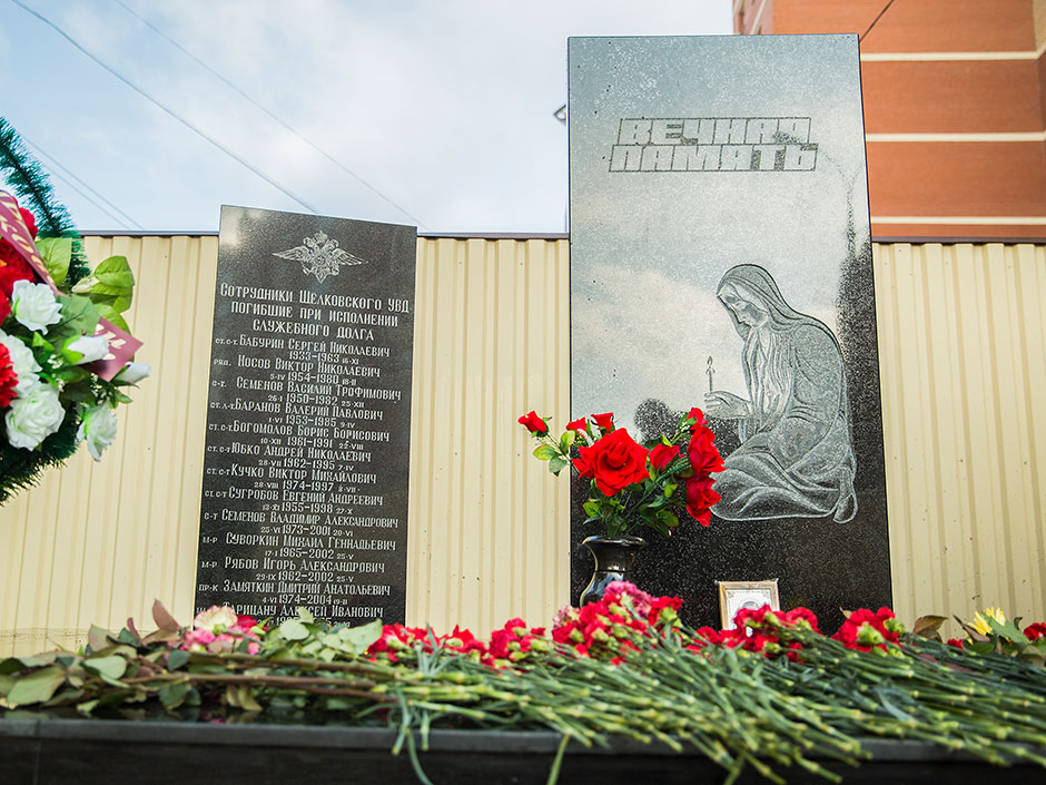 10 ноября благочинный церквей Щелковского округа протоиерей Андрей Ковальчук отслужил панихиду по сотрудникам Щелковского управления МВД, погибшим при исполнении служебных обязанностей. К мемориалу, расположенному на территории Управления, были возложены цветы.