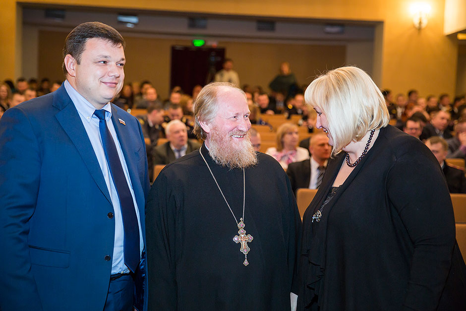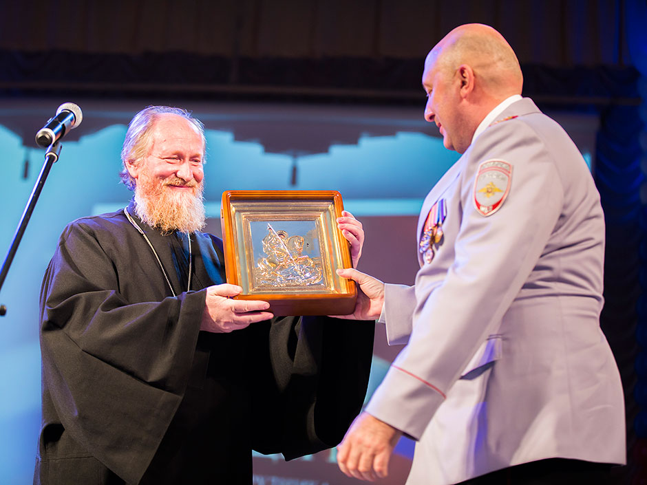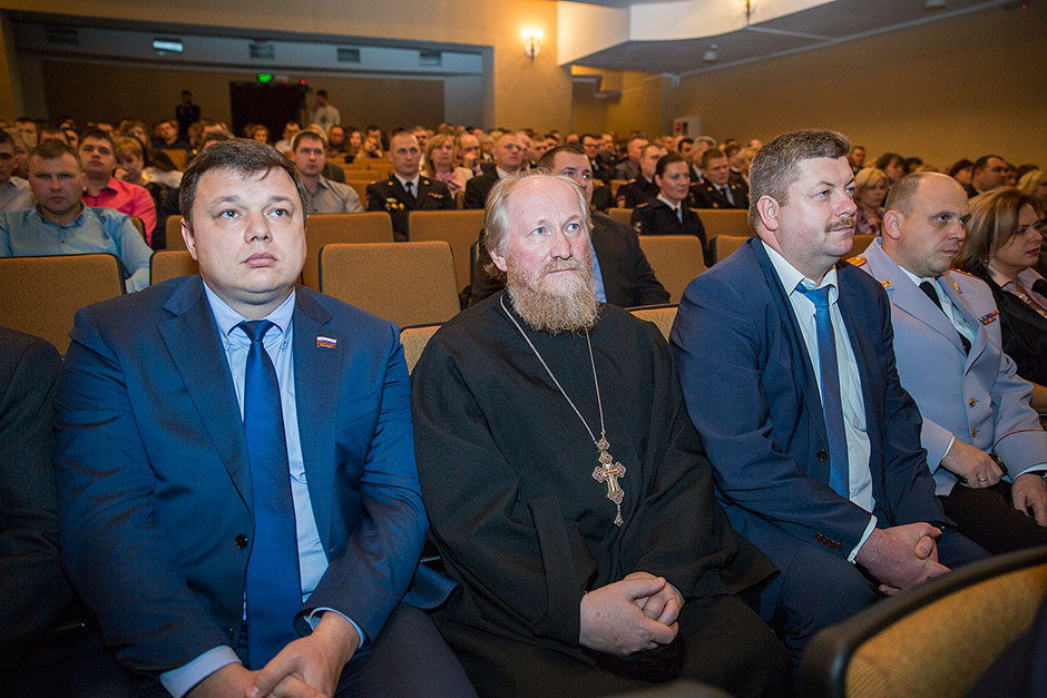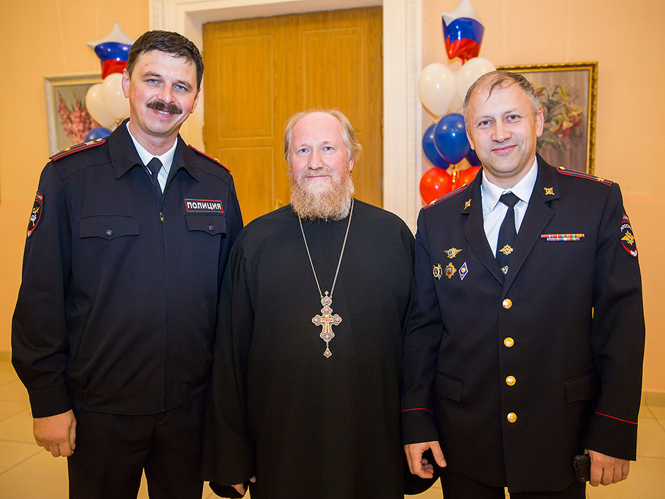 А накануне, 7 ноября, в Щелковском районном культурном комплексе прошел праздничный вечер, посвященный Дню сотрудника органов внутренних дел. В зале присутствовали Глава Щелковского муниципального района Н.В. Суровцева, главы городских и сельских поселений Щелковского муниципального района, благочинный церквей Щелковского округа протоиерей Андрей Ковальчук, ответственный отдела по издательской деятельности и связям со СМИ священник Евгений Трушин, депутаты Московской областной думы, депутаты Совета депутатов Щелковского муниципального района; члены семей сотрудников, погибших при исполнении служебных обязанностей; ветераны Управления, личный состав Межмуниципального Управления Министерства внутренних дел РФ «Щёлковское». Благочинный церквей Щелковского округа протоиерей Андрей Ковальчук пожелал сотрудникам Управления мужества и стойкости, самоотверженного служения Родине и вручил начальнику Щелковского управления МВД полковнику полиции Юрию Александровичу Черноусу икону святого великомученика Георгия Победоносца.