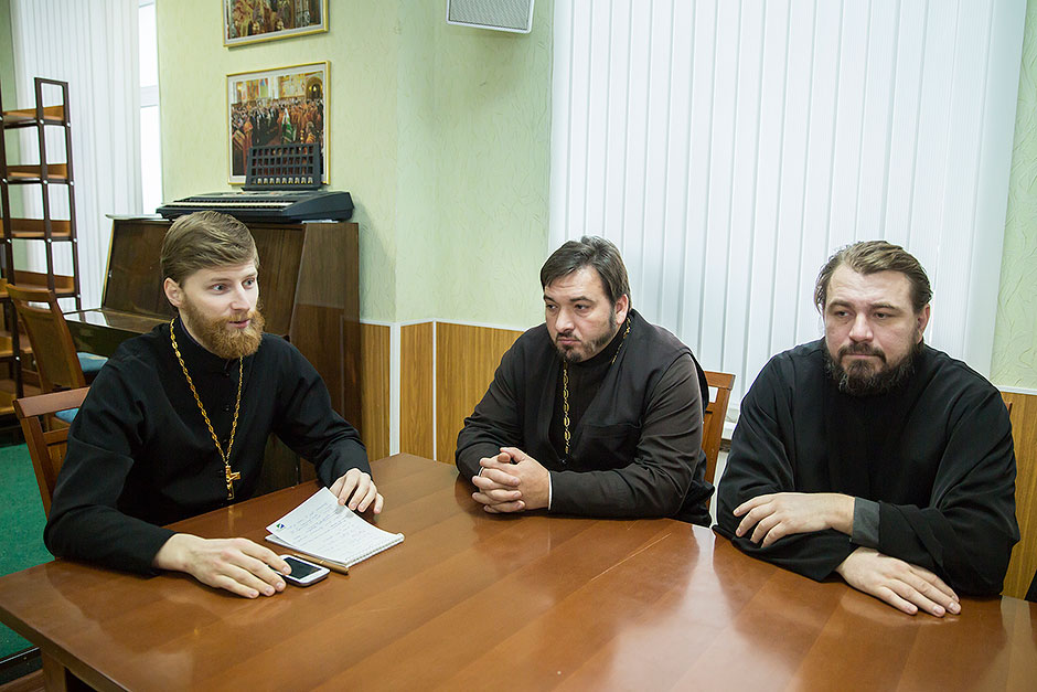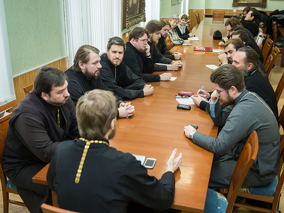 Своим опытом работы со школьниками поделились настоятель храма блж. Ксении Петербургской д. Медвежьи Озера священник Сергий Ковальчук и настоятель Державного храма г. Фрязино священник Димитрий Поповский. Духовенству и педагогам духовно-нравственных дисциплин были даны рекомендации и обсуждена методика подобных бесед, а также порядок окормления близлежащих учебных учреждений.