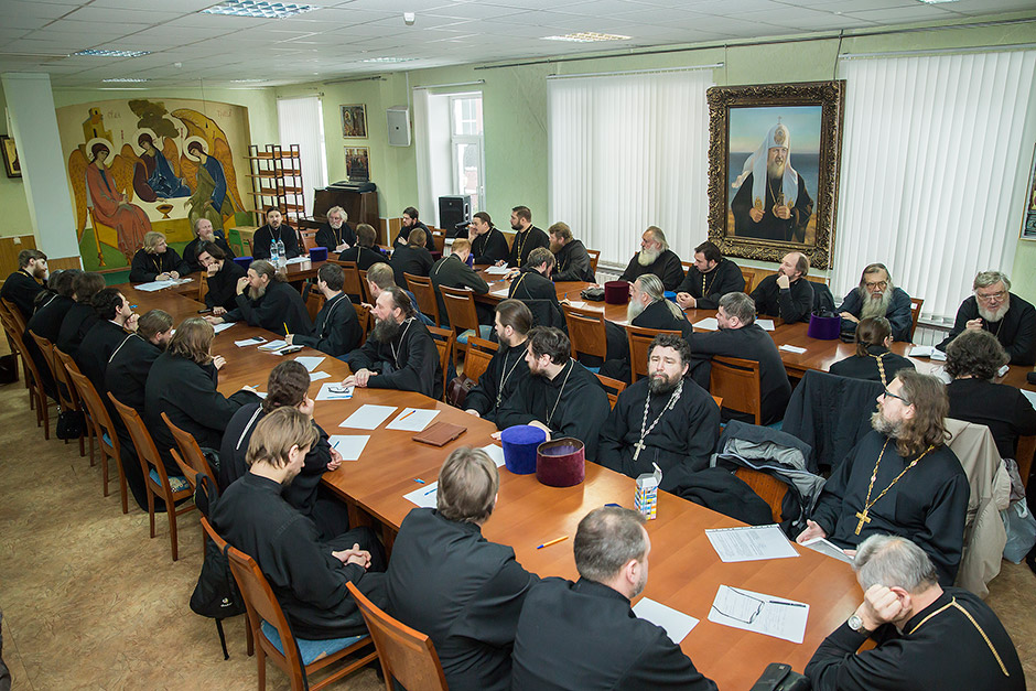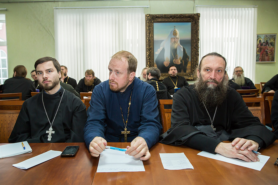 Его открыл благочинный церковного округа протоиерей Андрей Ковальчук, он ознакомил священнослужителей с пожеланиями и рекомендациями Правящего архиерея Московской епархии митрополита Крутицкого и Коломенского Ювеналия, которые были высказаны на ежегодном собрании благочинных Московской епархии.