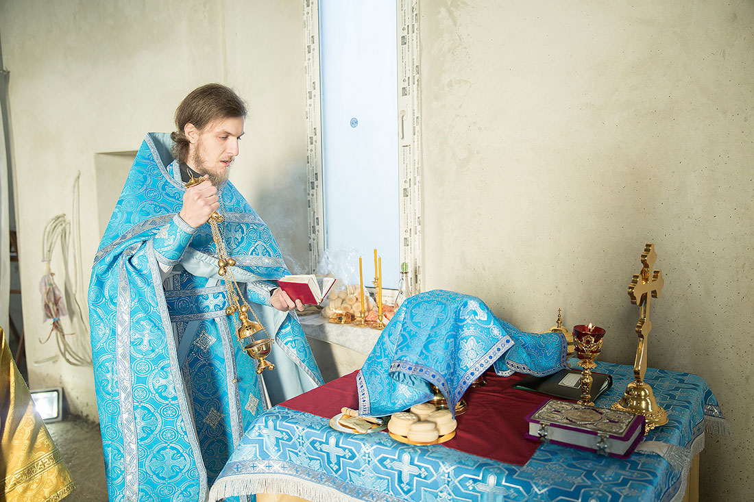 14 октября благочинный церквей Щелковского округа протоиерей Андрей Ковальчук возглавил первую Божественную литургию в стенах строящегося Покровского храма в деревне Воря-Богородское. Ему сослужил настоятель храма священник Георгий Дорофеев.