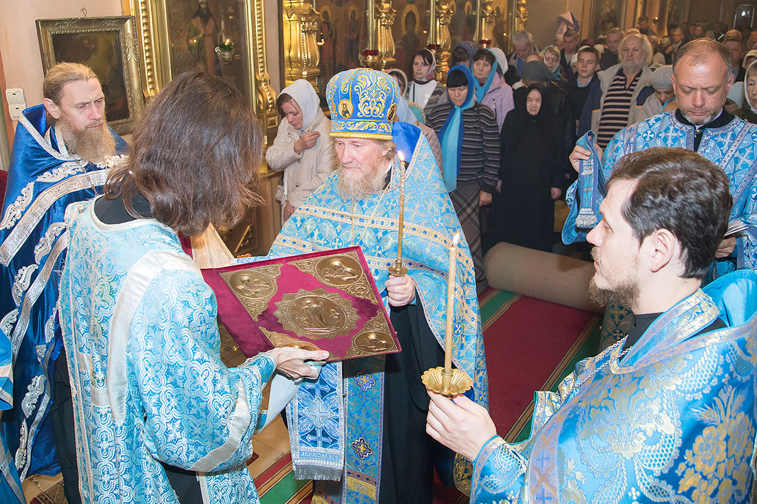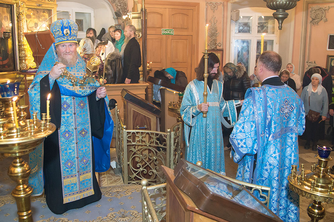 Благочинный церквей Щелковского округа протоиерей Андрей Ковальчук совершил Всенощное бдение в Покровском храме города Щелково, ему сослужили клирики Щелковского благочиния и настоятель Покровского храма протоиерей Алексий Никонов. Достоверно известно, что уже в первой четверти XVII века при въезде в село Хомутово (ныне улица Широкая г. Щелково) стояла деревянная, выстроенная клетью, церковь Покрова Пресвятой Богородицы. Ныне существующая каменная Покровская церковь возводилась поэтапно с 1800 по 1856 годы на средства прихожан. Наиболее ранняя часть постройки - ротонда храма 1800 года. Строительство трапезной было окончено в 1832 году. Храм один из древних на нашей Щелковской земле, в нем непрерывно шли богослужения и многие поколения щелковчан молились в нем. И в свой престольный праздник храм всегда переполнен верующими. С особой радостью прихожане встретили благочинного отца Андрея и по окончании Всенощного бдения благодарили его за совместную молитву.