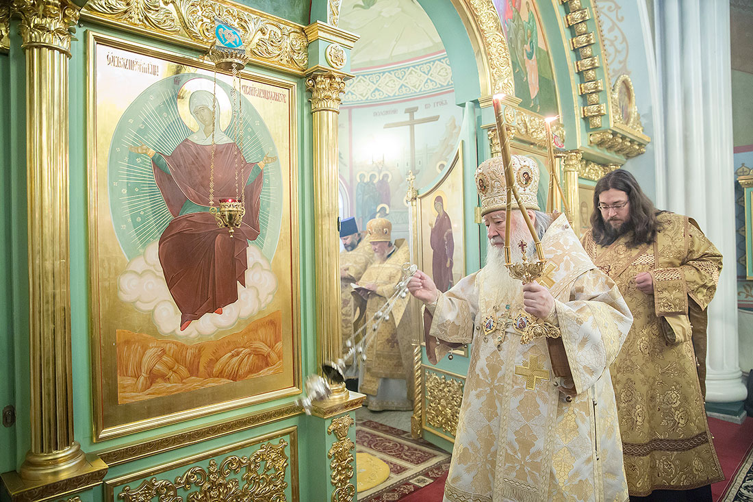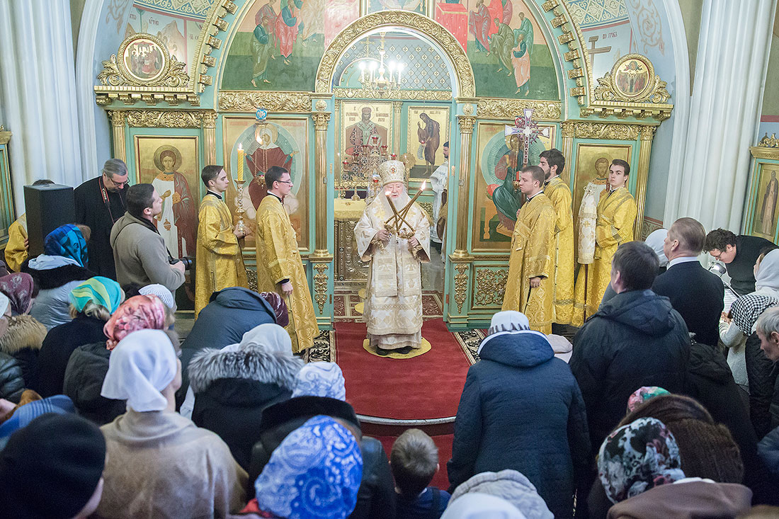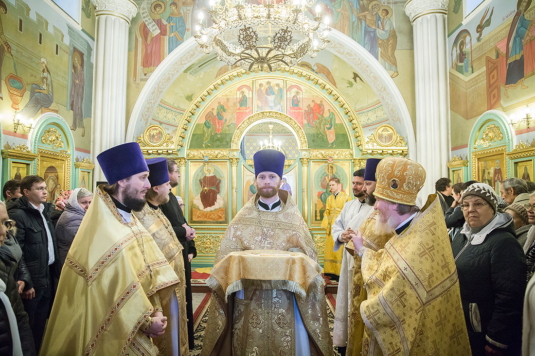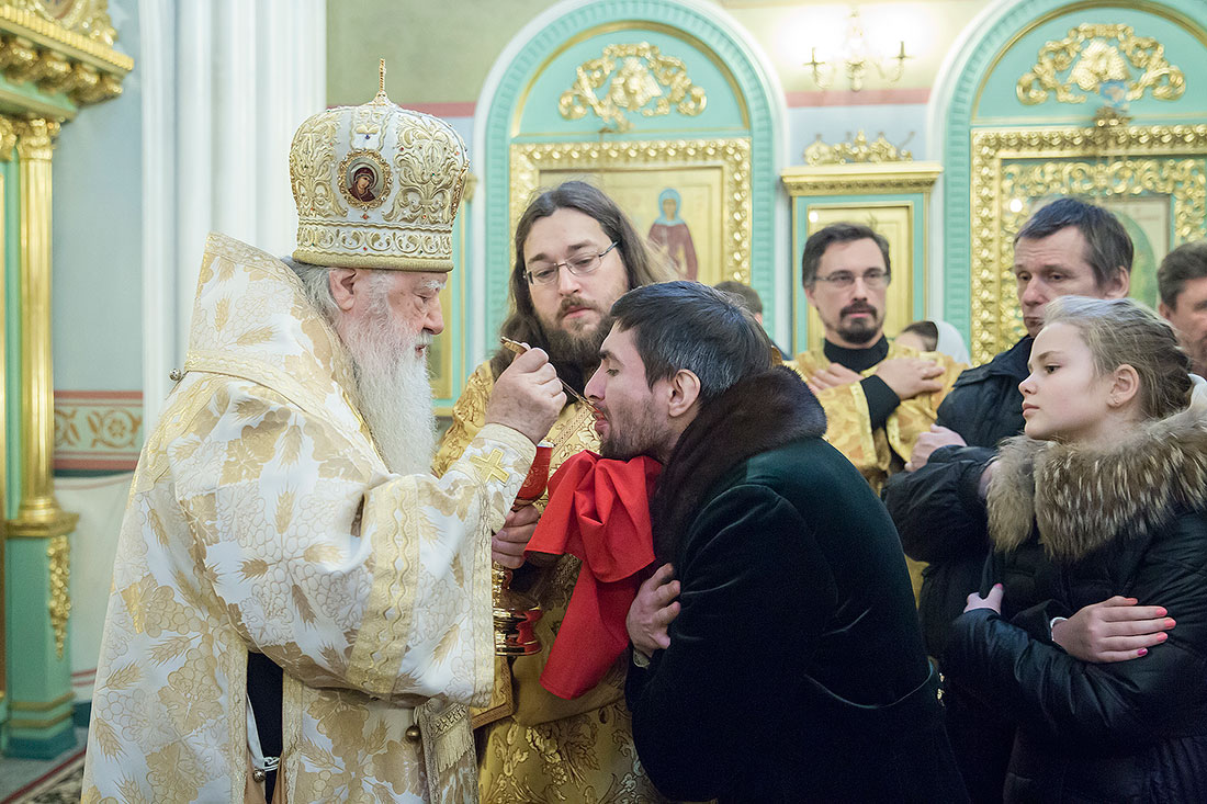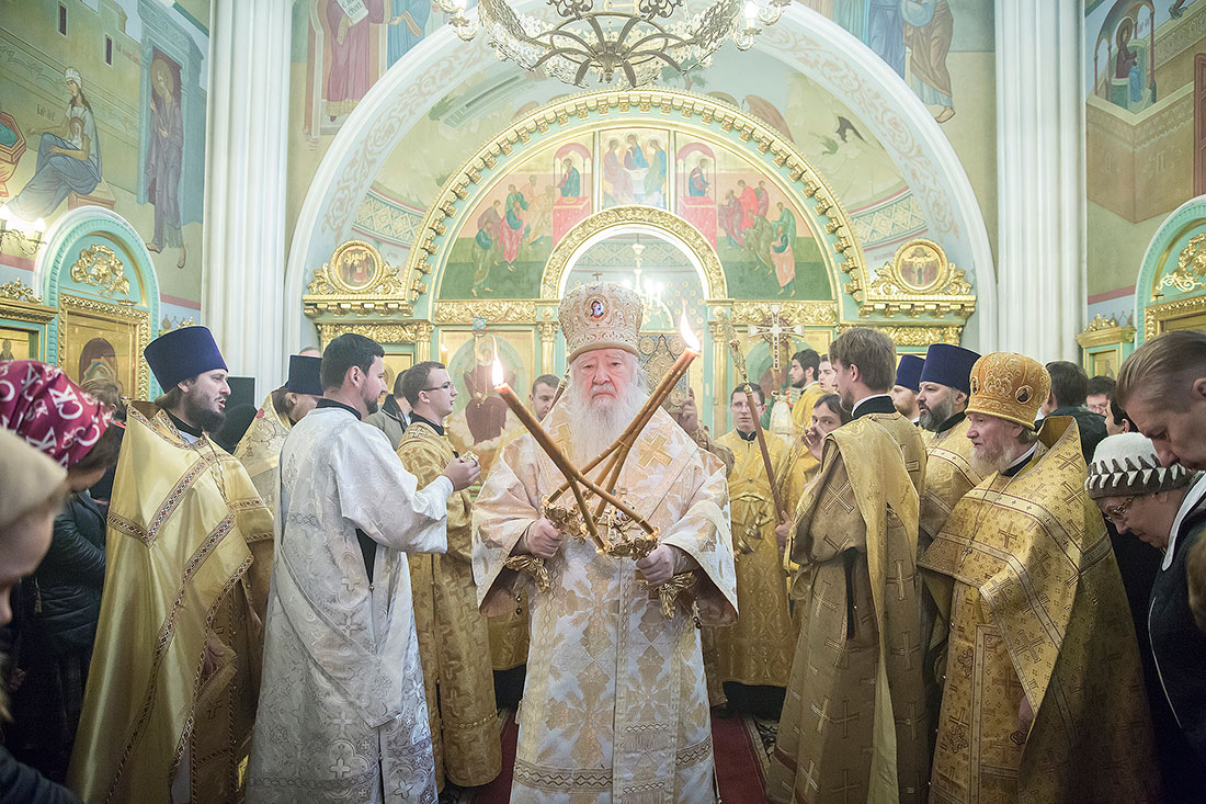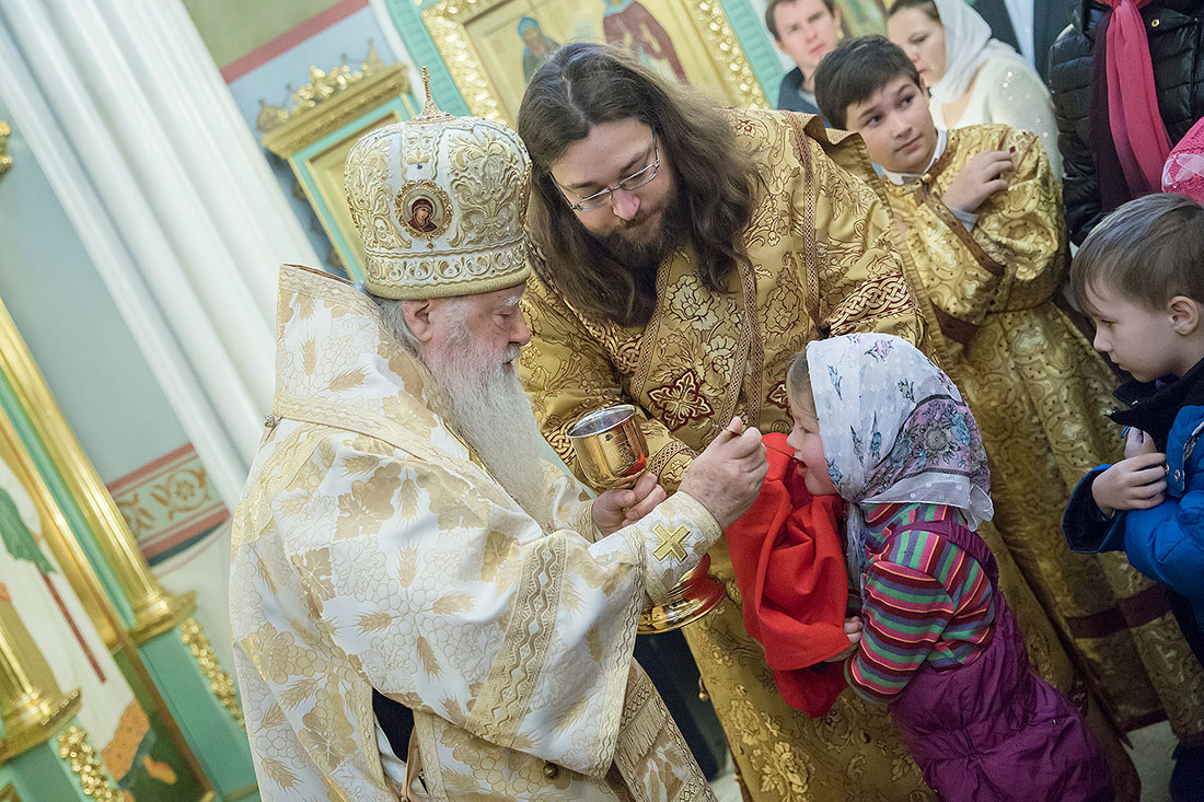 После богослужения Владыка обратился к пастве со следующими словами: «Дорогие и возлюбленные отцы, братья и сестры, уважаемый Игорь Викторович! Я очень рад, что в этот воскресный день Господь сподобил меня вновь совершить Божественную литургию в этом святом храме, посвященном иконе Божией Матери «Спорительница хлебов». Совсем недавно здесь отмечался престольный праздник в честь иконы Божией Матери «Спорительница хлебов», но в силу обстоятельств, я не мог разделить его с вами, но мысленно был здесь. И вот в самое ближайшее время после престольного праздника решил посетить Вас и совершить здесь вместе с вами молитву. Я просил Господа, чтобы он исполнил желание моего сердца. Храм этот – душа предприятия, которое здесь расположено. Здесь совершается Божественная литургия и молятся обо всех людях, в том числе обо всех труждающихся здесь. Помимо этого, в храме Божием мы молимся не только о себе и о близких своих, но вспоминаем всех, кто нуждается в наших молитвах. А сегодня мы особенно это чувствуем, потому что весь мир встревожен теми террористическими актами, которые совершены в Бейруте, в Париже, где много пострадало невинных людей. С ужасом думаешь о том, что люди нарушают Заповедь Божию: «Не убий». Эти страшные преступления возопиют к Небу. К месту гибели людей несут цветы, зажигают свечи. А у нас, православных, есть обычай совершать молитву о них в храме Божием, и сегодня мы с сокрушением сердца молились о погибших людях, чтобы Господь вселил их в Царство Небесное. С этого святого места я выражаю от имени Московской епархии всем родственникам и всем организациям, которых коснулись эти варварские акции, свои соболезнования и заверение в молитвах. Сегодня за Божественной литургией в Послании к Ефесянам святого апостола Павла говорилось, что «Христос есть мир наш». Вот это мы должны всем сердцем воспринимать, дорогие братья и сестры, надеяться на Господа во всех радостных и печальных обстоятельствах, обращаться ко Господу, чтобы он благословил нашу жизнь и дал мир нашим сердцам и людям с метущимися сердцами. Сегодня было много детей за богослужением, и это повод и радости нашей, и надежды. Хочется пожелать, чтобы родители воспитывали детей в вере православной, в любви Христовой. Если так воспитают детей, то они будут счастливы и благословенны. Я поздравляю всех вас с праздником, причастников и причастниц с принятием Святых Христовых Таинств и призываю на всех вас Божие благословение. Храни Вас все Господь!».