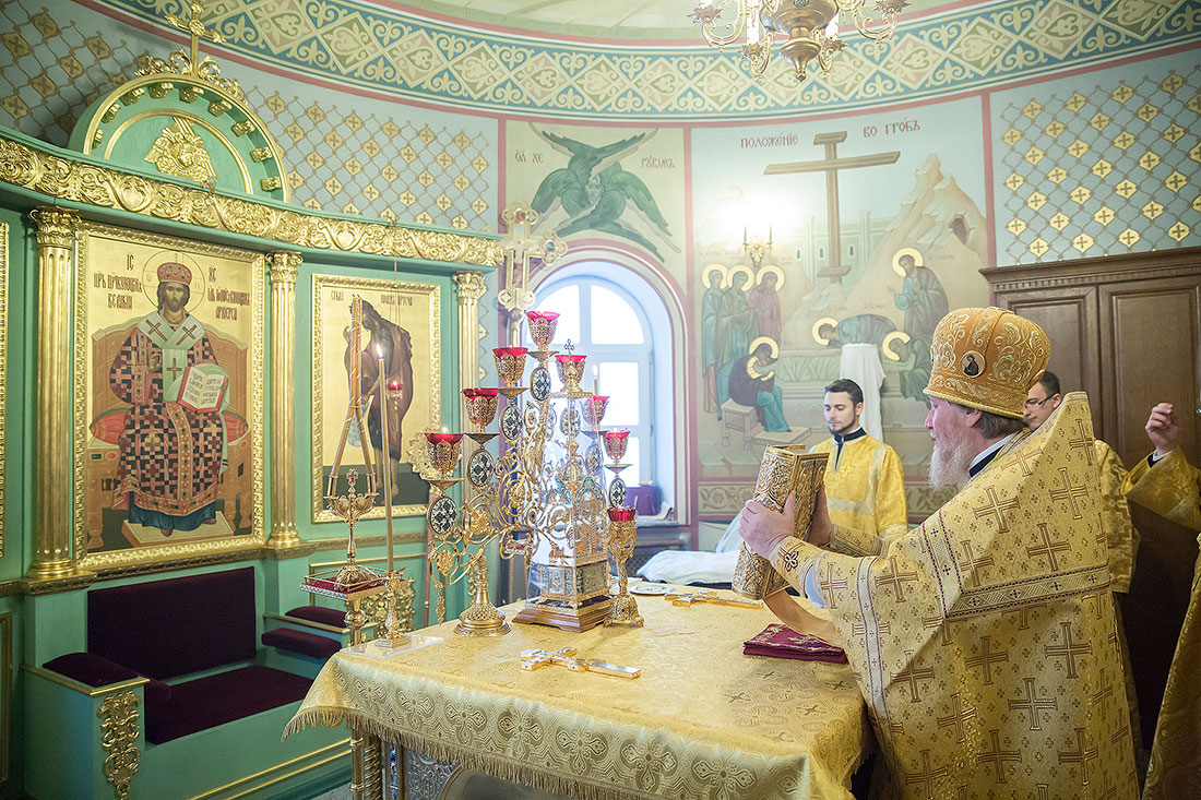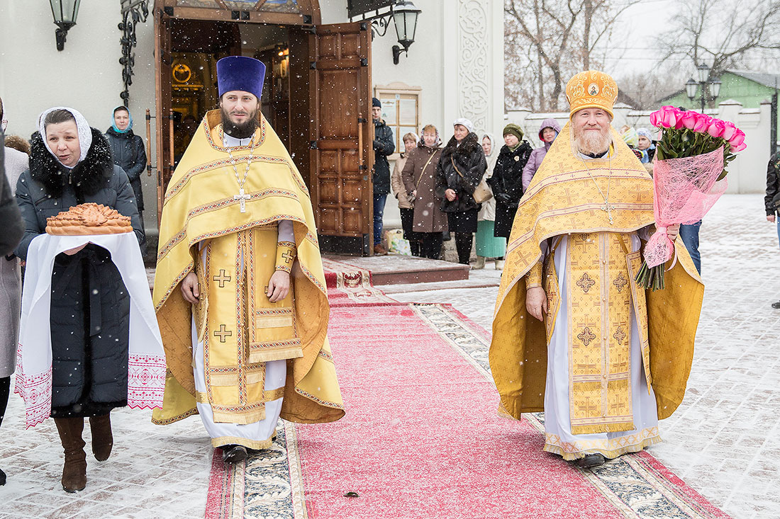Его встречали генеральный директор ЗАО «Щелковохлеб» Игорь Викторович Ларин, депутат Московской областной думы Владимир Николаевич Шапкин, благочинный церквей Щелковского округа протоиерей Андрей Ковальчук. Владыка Ювеналий возглавил Божественную литургию в сослужении секретаря Московского епархиального управления благочинного Видновского церковного округа протоиерея Михаила Егорова, благочинного Щелковского церковного округа протоиерея Андрея Ковальчука, благочинного Бронницкого церковного округа протоиерея Георгия Пищулина и благочинного Клинского церковного округа священника Евгения Малькова.