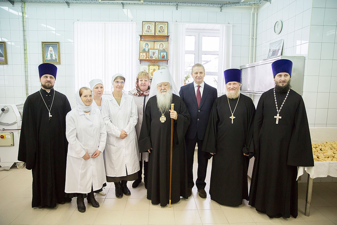 После богослужения Владыка Ювеналий посетил просфорных цех Щелковского хлебозавода и благословил тружениц, выполняющих трудное и благодатное послушание выпечки церковного хлеба.