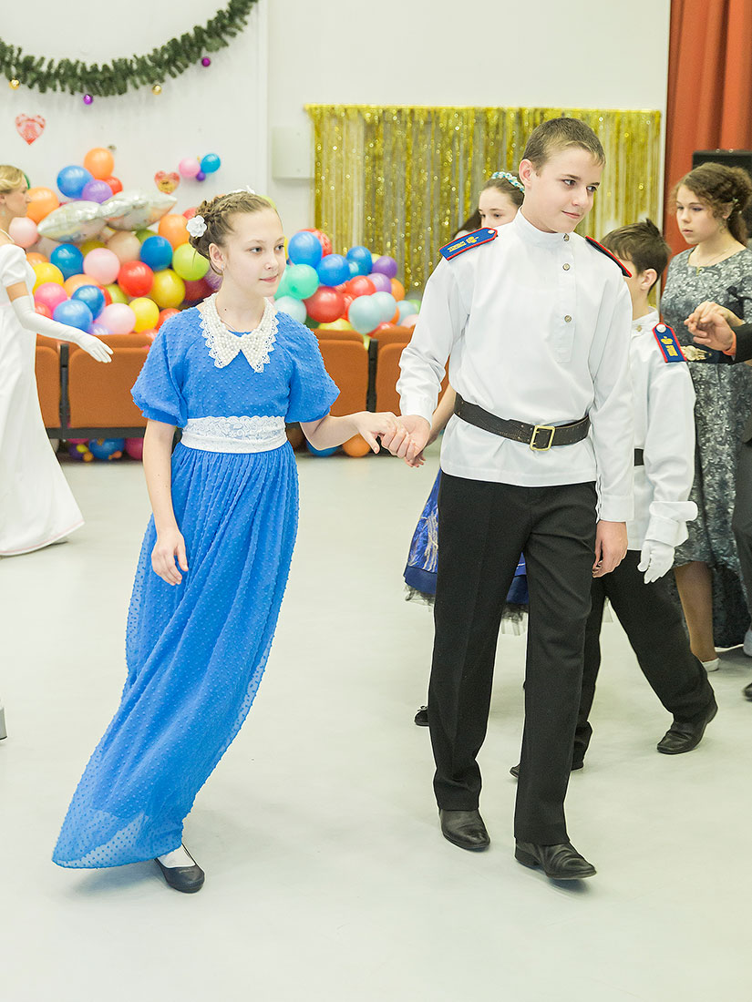Рождественский бал - традиция новая, но уже полюбившаяся ребятам. Как и раньше, современный бал призван подарить юношам и девушкам атмосферу праздника и торжества, научить общаться с противоположным полом достойно, привить любовь к вековым культурным традициям. Обязательным условием для участников Бала является соблюдение дресс-кода: девушкам необходимо явиться в вечернем или бальном платье, юношам – элегантном костюме. Новоиспеченные «кавалеры и дамы» танцевали польку, кадриль, играли в ручеек, кроме того ребятам дали урок светского «зашифрованного» общения. Как было принято на балах, юношам и девушкам было предложено угощение. В завершении действа гости восхищались организацией праздника, непринуждённой атмосферой, в которой им удалось перевоплотиться в господ и дам XIX века. Ребята узнали много нового и с удовольствием разделили с гостями радость общения.