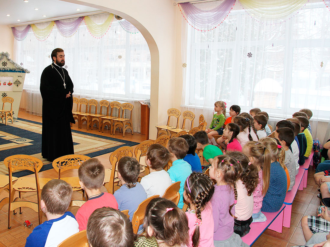 20 января учащиеся Щелковского отделения православной гимназии «Ковчег» вместе с настоятелем Серафимо-Саровского храма г. Щелково Виталием Крикота посетили детский сад № 18 «Росинка». Открыв мероприятие, отец Виталий пожелал всем воспитанникам здоровья, послушания родителям и воспитателям.