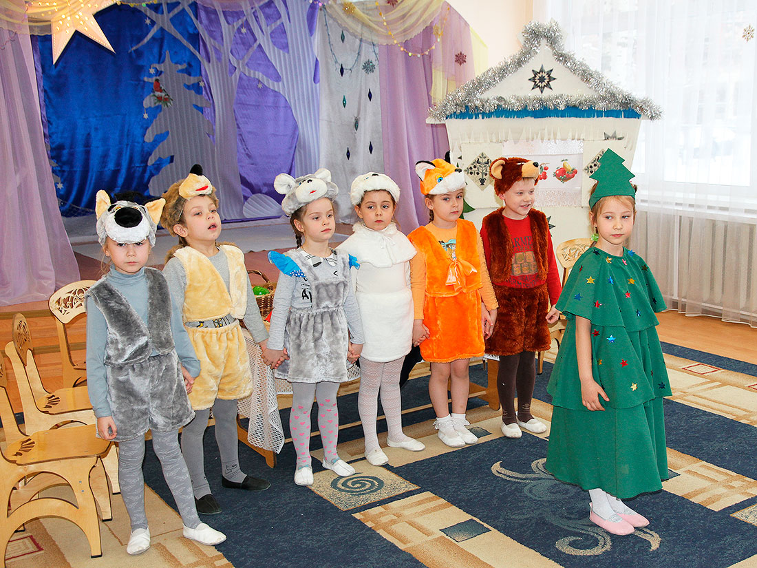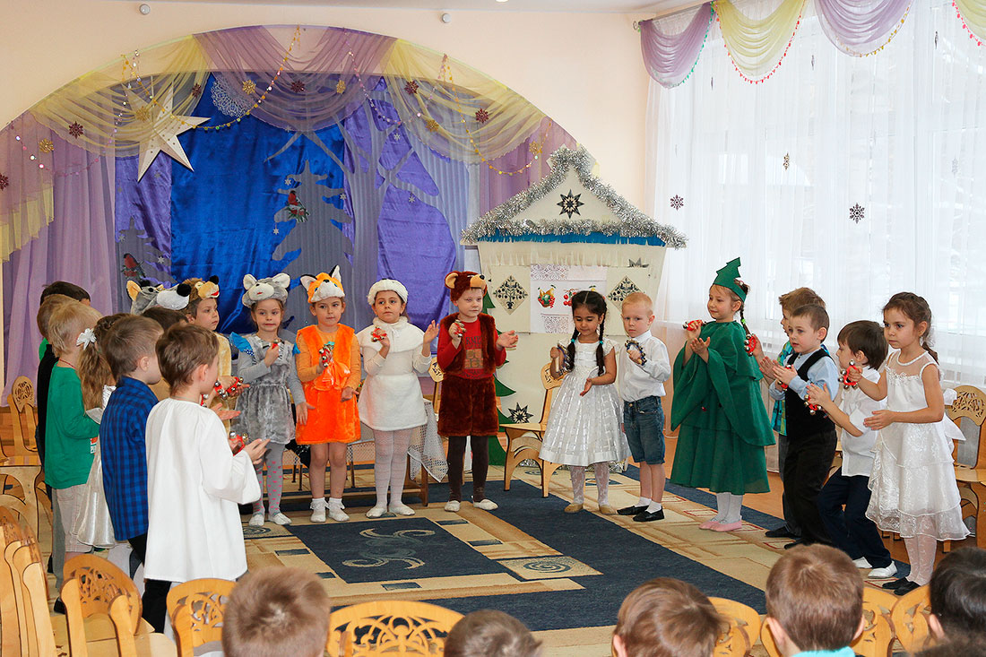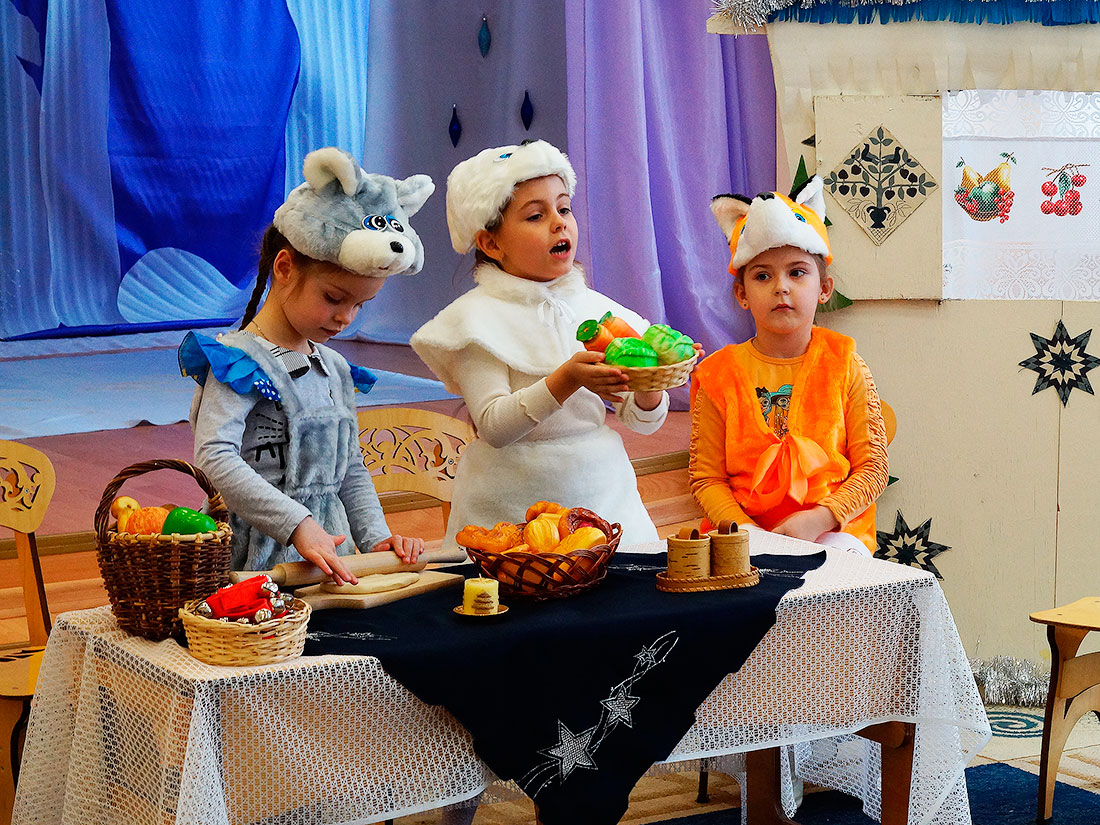 В начале Рождественского утренника перед гостями выступили воспитанники детского сада, которые показали театральную постановку по сказке «Теремок». Ребята изображали сказочных животных: зайчонка, хитрую лису, доброго медвежонка. Все герои сказки с нетерпением ждали Рождества Христова, только встретились с небольшими трудностями – у елочки не было праздничного новогоднего наряда. Но в праздник случаются чудеса, и оно свершилось, и тогда ребята стали все дружно радоваться Рождеству, петь песни и водить хоровод вокруг наряженной елки.