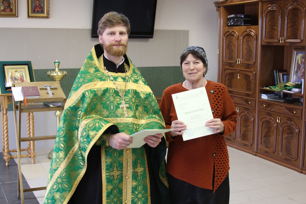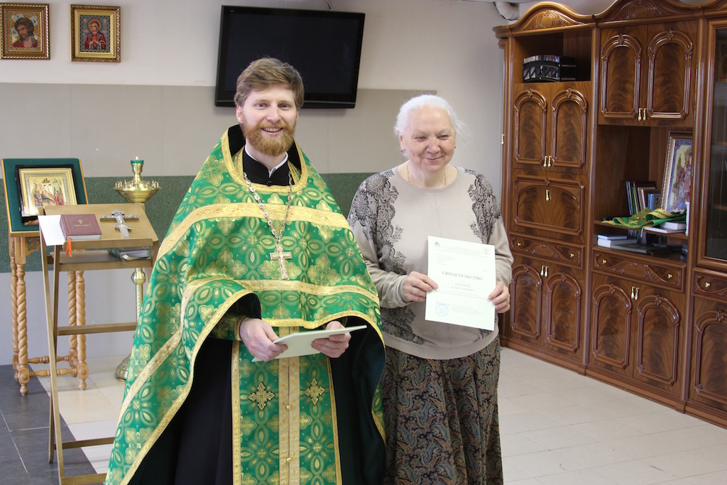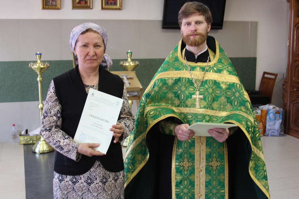 Торжественное мероприятие началось с благодарственного молебна, который совершил священник Димитрий Поповский. После краткого поздравления отец Димитрий вручил всем выпускникам свидетельства об окончании курсов. Завершился выпускной общей фотографией и чаепитием с обсуждением дальнейших перспектив.