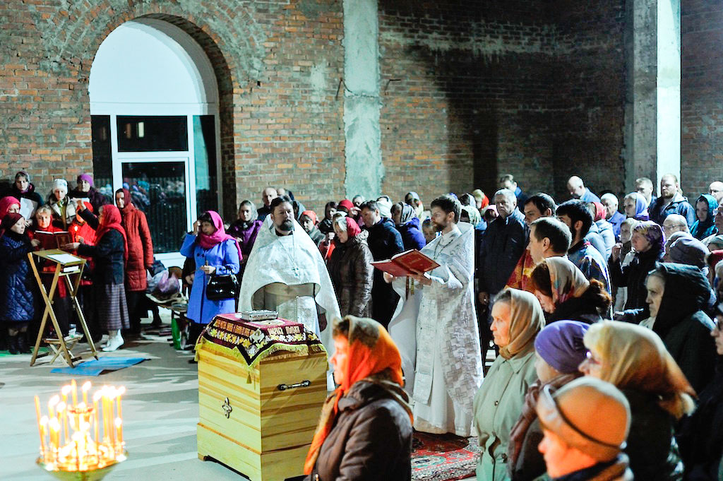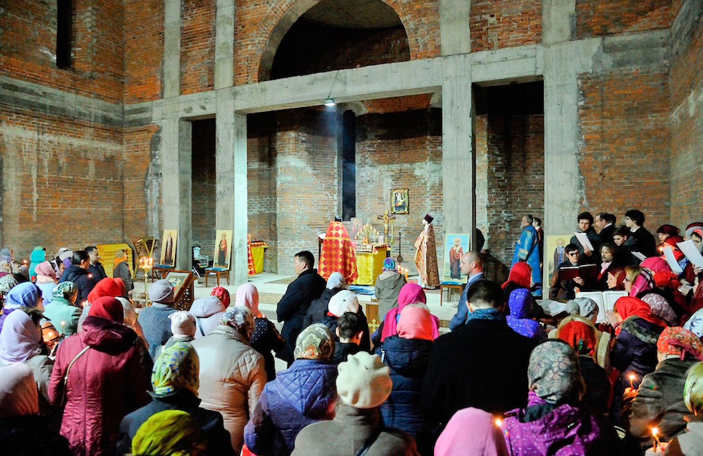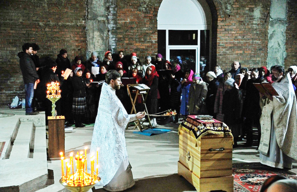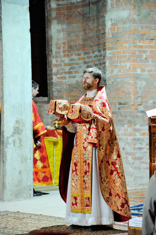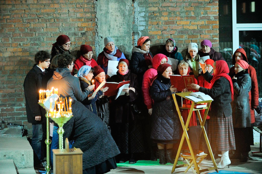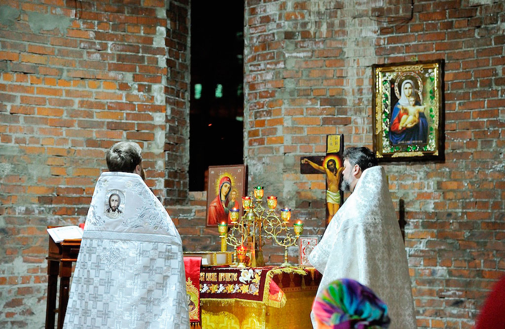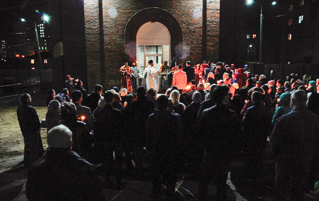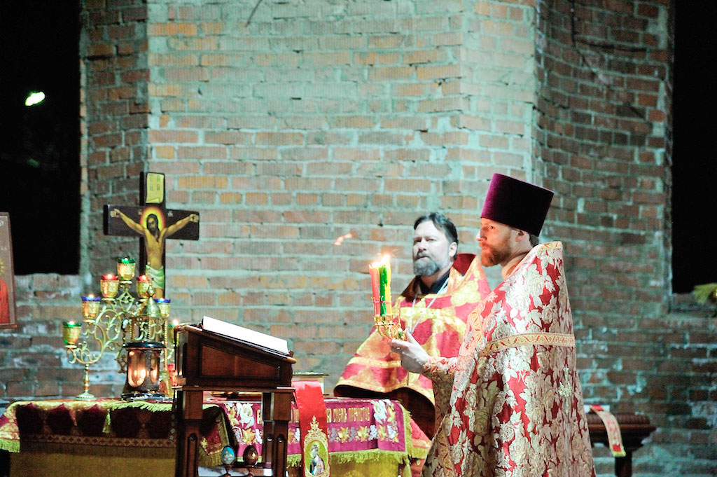 В ночь с 30 апреля на 1 мая священник Дмитрий Поповский совершил первое Пасхальное богослужение в новостроящемся Державном храме г. Фрязино.