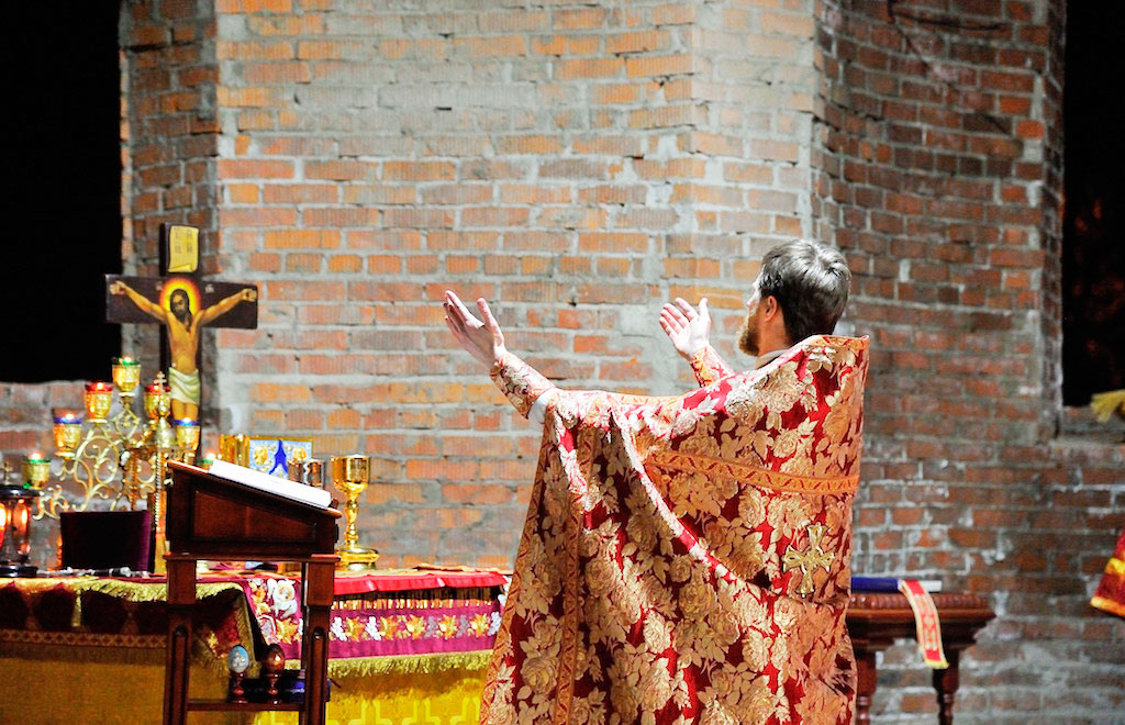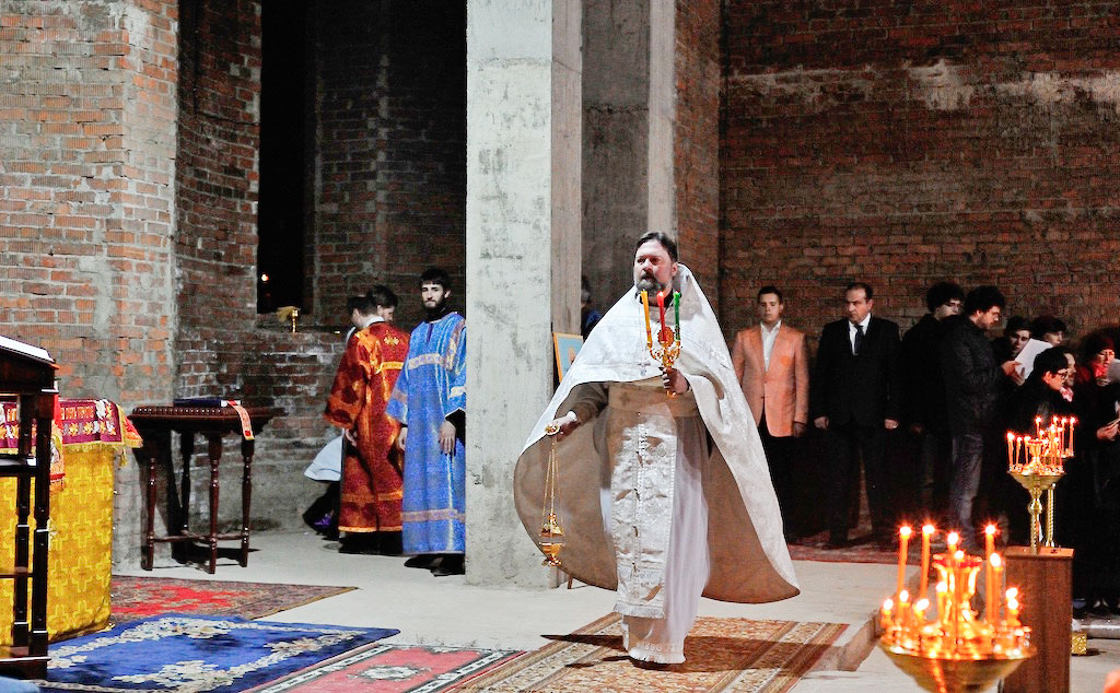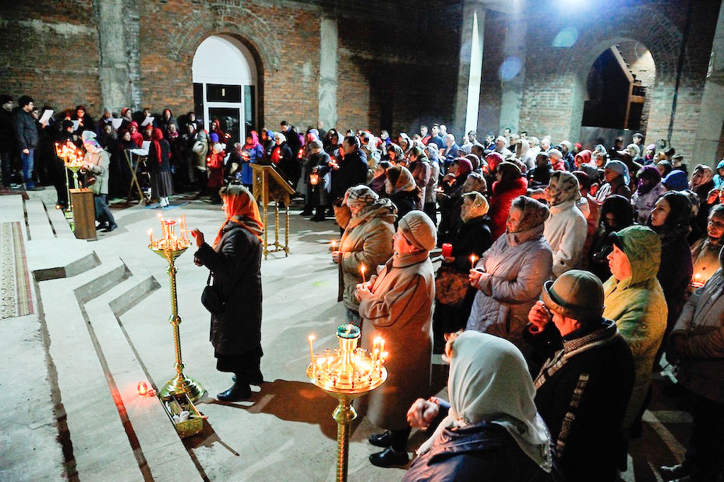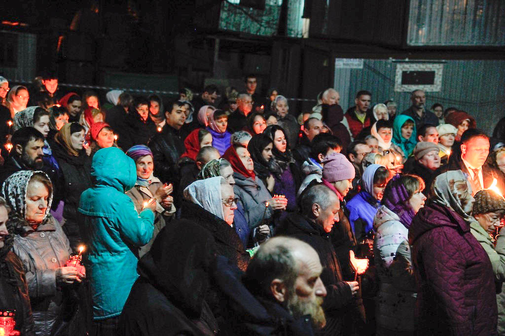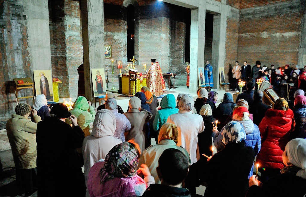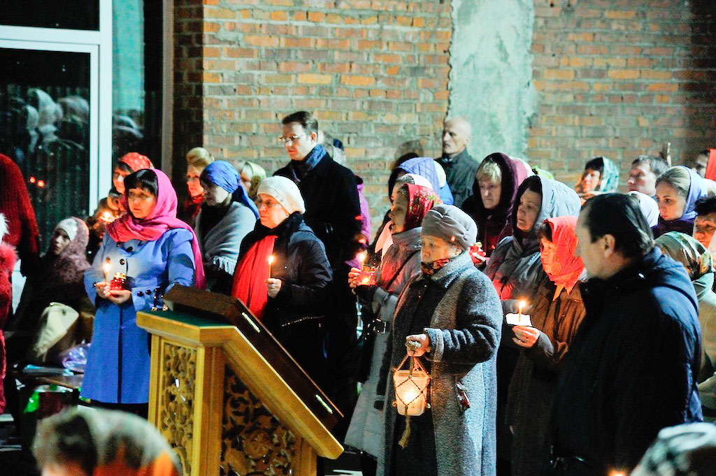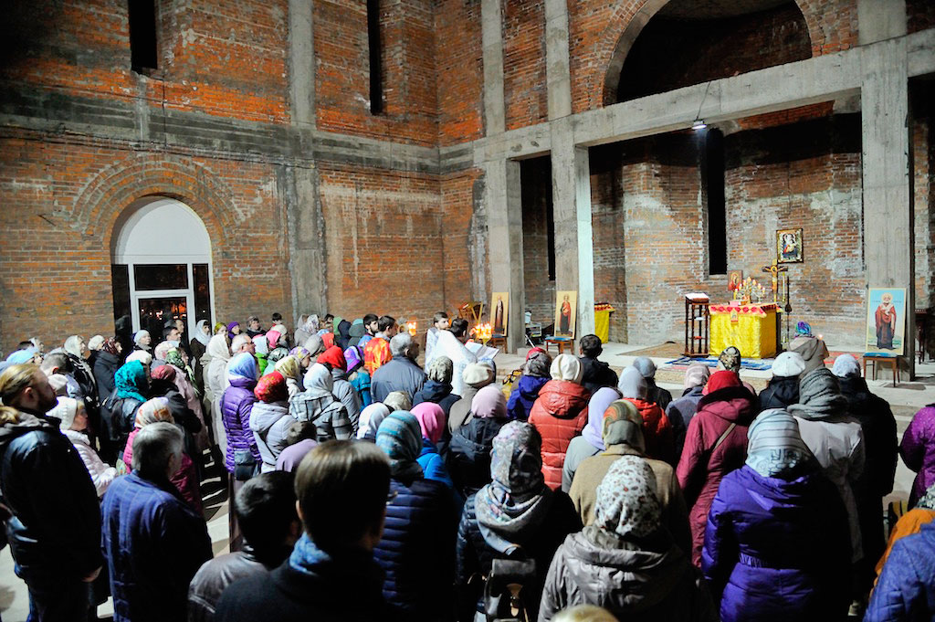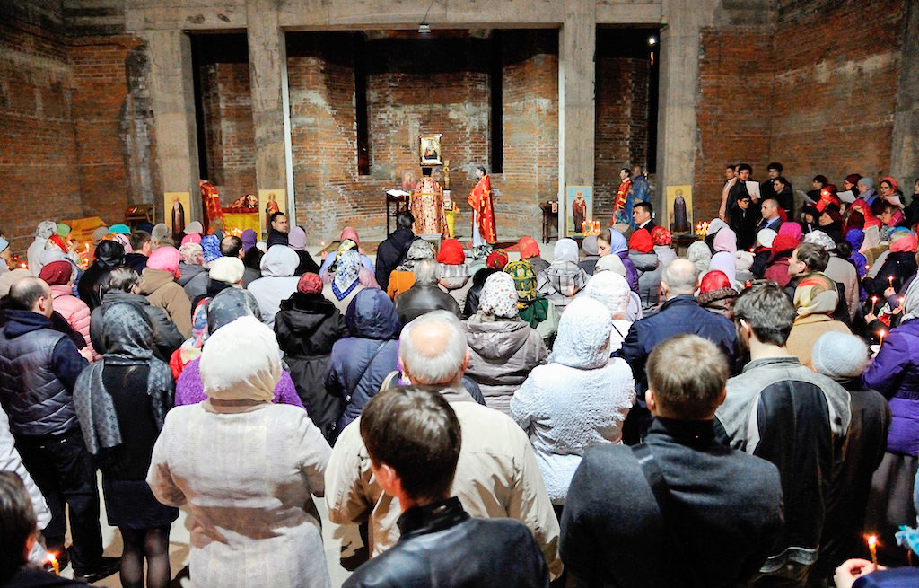 В ночь с 30 апреля на 1 мая священник Дмитрий Поповский совершил первое Пасхальное богослужение в новостроящемся Державном храме г. Фрязино.