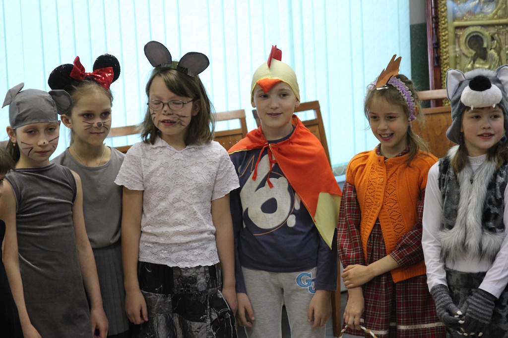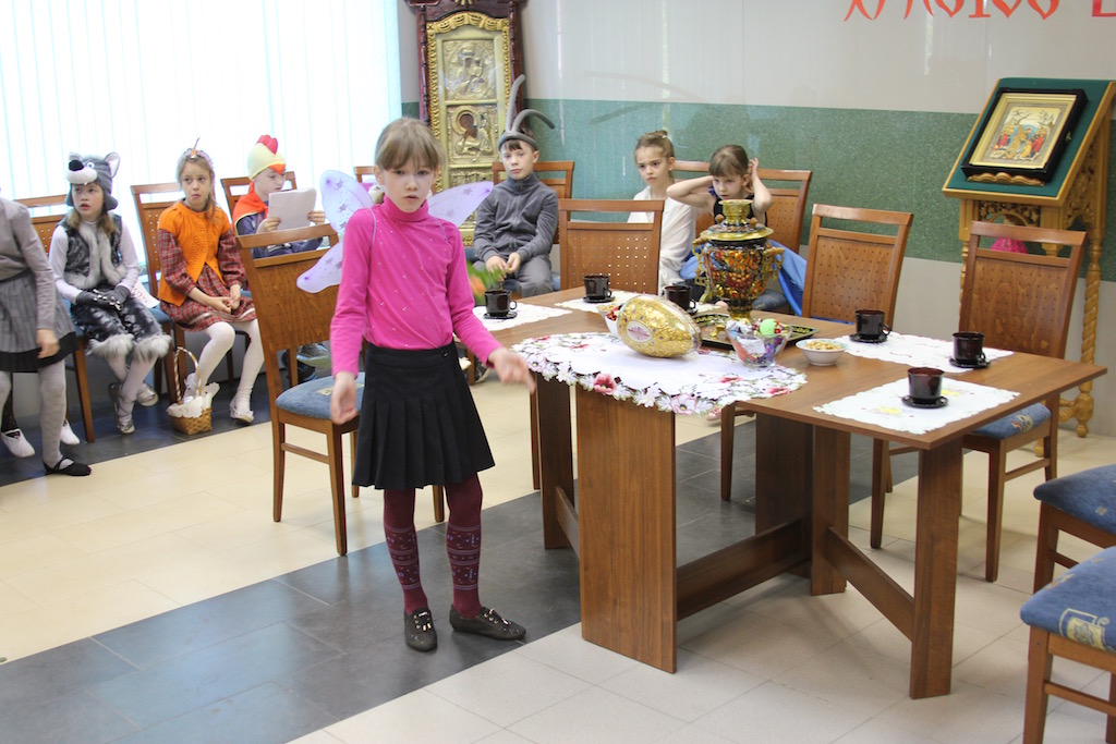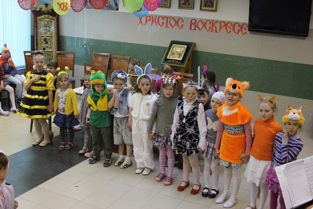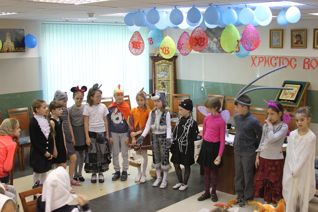 15 мая, в Неделю Жен-мироносиц, в Воскресной школе Державного храма города Фрязино состоялся пасхальный утренник. Вниманию прихожан воспитанники школы представили театрализованную постановку «Муха-цокотуха на новый лад».