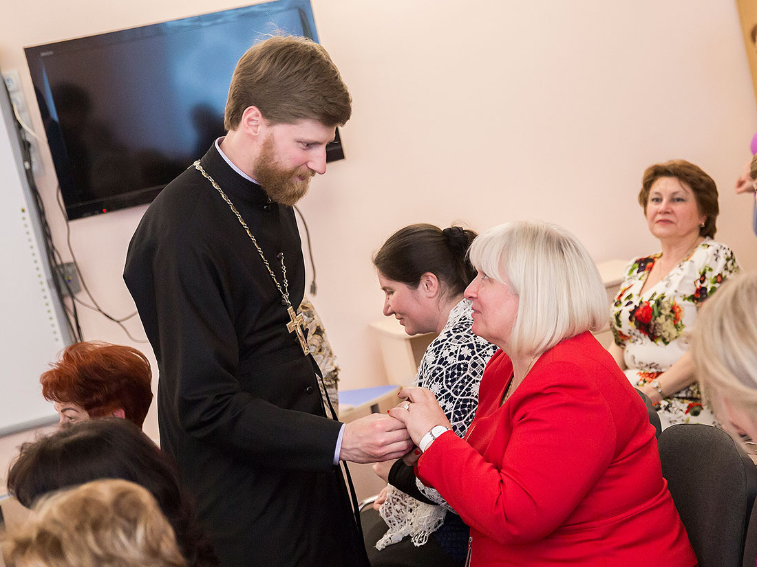 Среди почетных гостей на празднике присутствовал настоятель Державного храма города Фрязино священник Димитрий Поповский. В своем приветственном слове отец Димитрий поздравил собравшихся с праздником всех праздников и на память подарил заведующей детским садом Надежде Леонидовне Ганичкиной пасхальное яйцо.