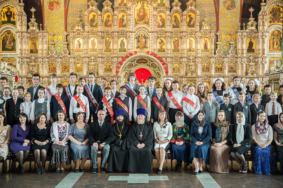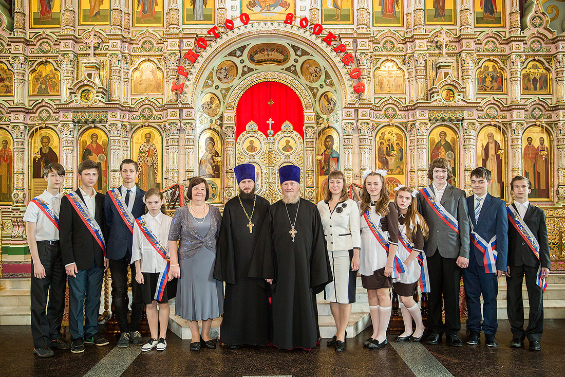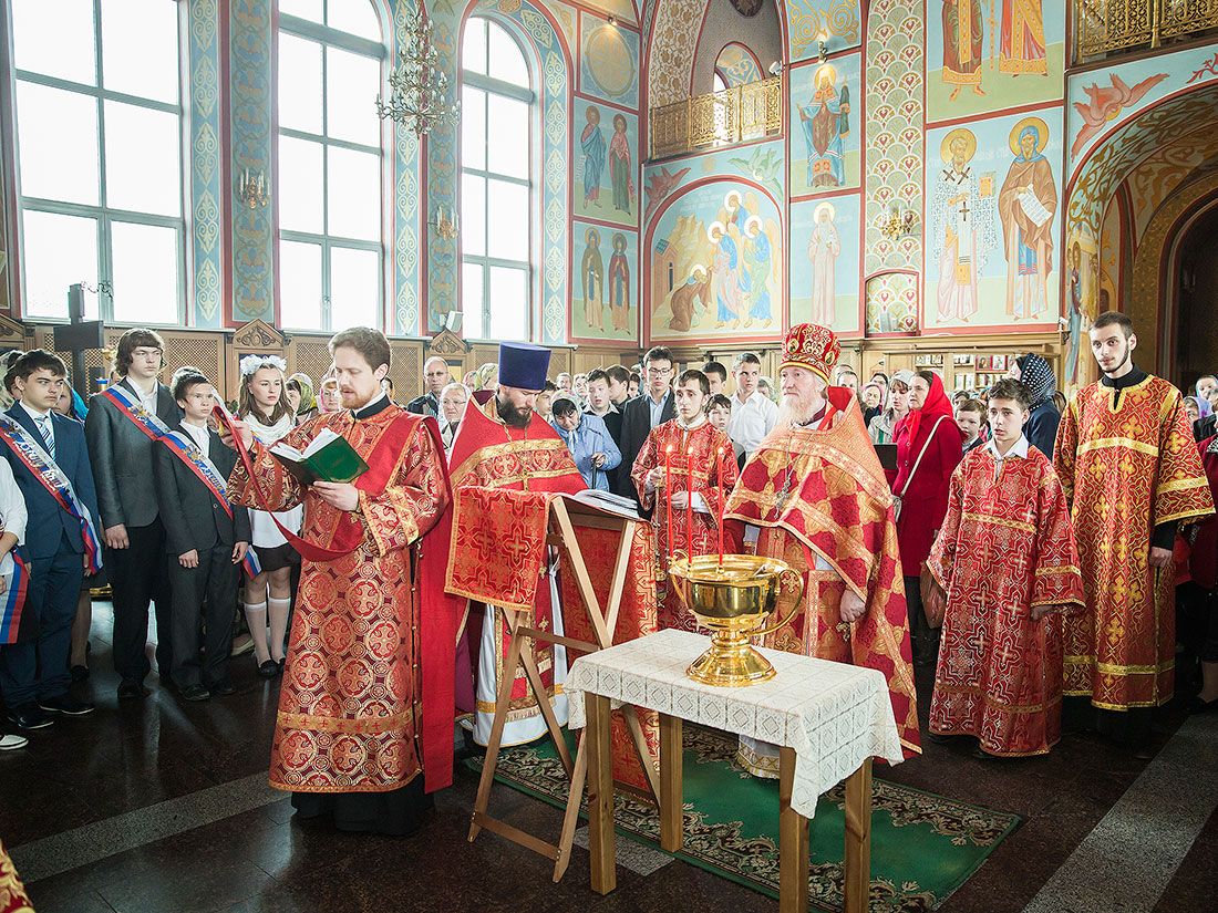 В Троицком соборе г. Щелково благочинный церквей Щелковского округа протоиерей Андрей Ковальчук совершил благодарственный молебен по окончанию учебы, благословил учеников на успешную сдачу экзаменов и обратился с приветственным словом к педагогам, детям и их родителям.
