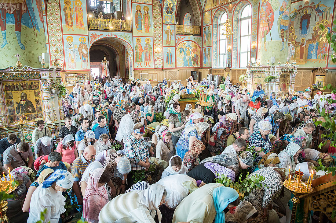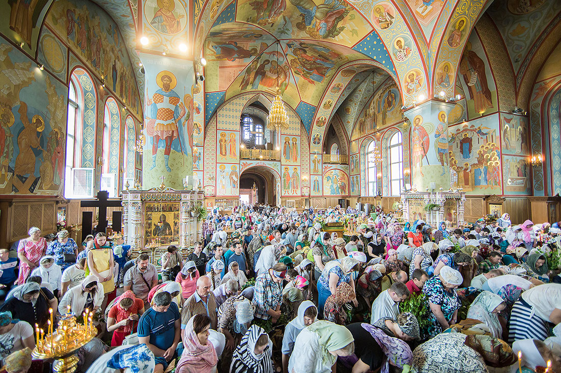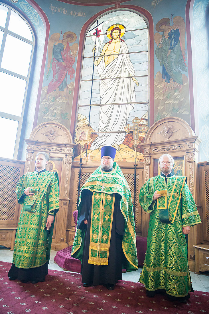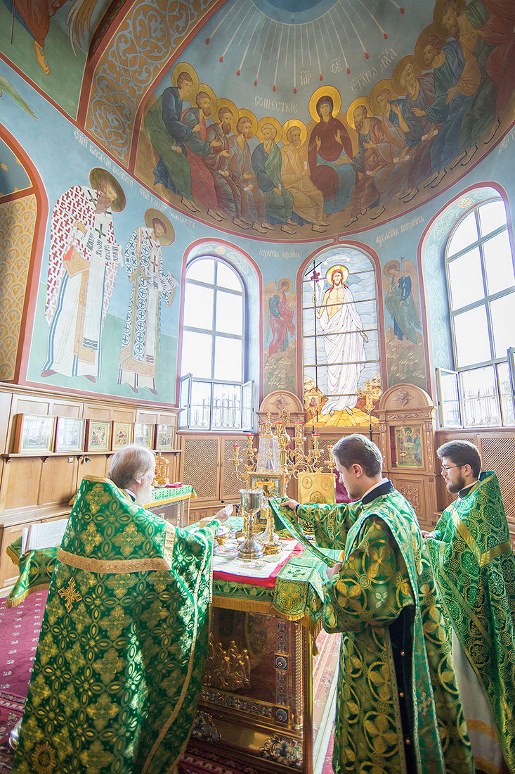 Накануне благочинный церквей Щелковского округа, настоятель Троицкого собора протоиерей Андрей Ковальчук в сослужении клириков собора совершил Всенощное бдение, а самый день праздника Божественную литургию с вечерней, за которой читаются коленнопреклонные молитвы. Богослужебные песнопения исполнил хор Троицкого собора под управлением Виталия Кисиля.