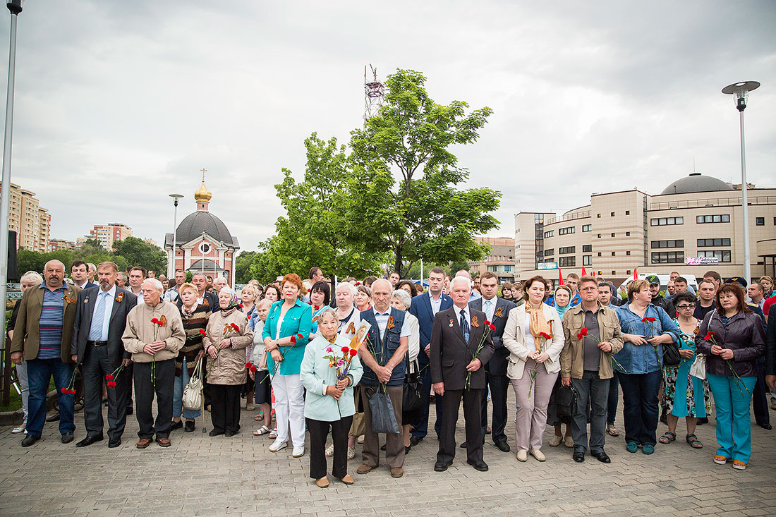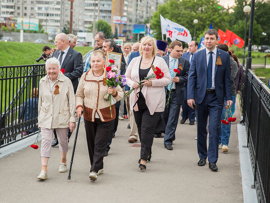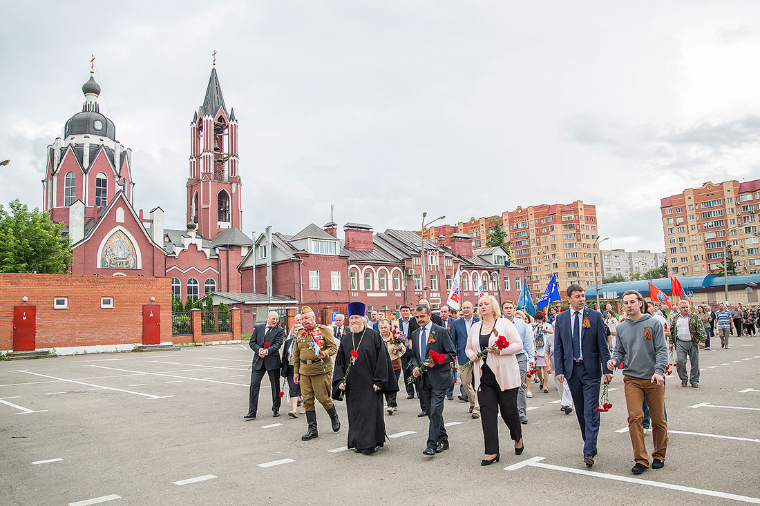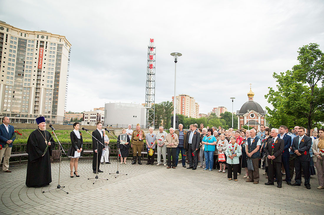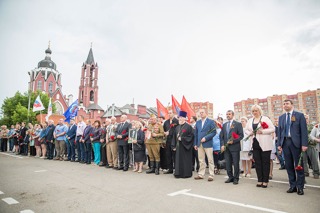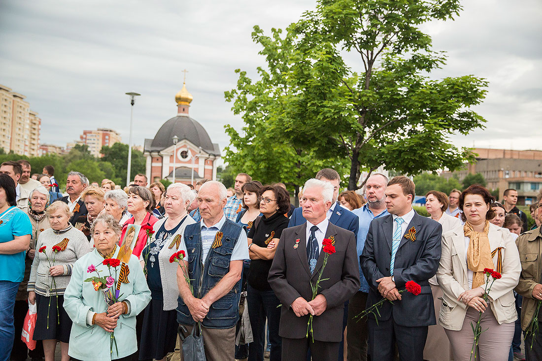 Перед ветеранами, представителями молодежных и общественных организаций района, горожанами выступили: Глава Щелковского муниципального района Н.В. Суровцева, депутат Московской областной думы В.Н. Шапкин, глава городского поселения Щелково А.А. Шалыгин, председатель Совета ветеранов Щелковского района А.Н. Волков и благочинный церквей Щелковского округа протоиерей Андрей Ковальчук. У реки была зажжена памятная дата – 22 июня 1941 года. С красными гвоздиками в руках и зажженными свечами горожане прошли к Мемориалу погибшим воинам на Аллее памяти у Троицкого собора. Ключарь собора священник Александр Амелин совершил заупокойную литию обо всех, не вернувшихся с поля брани родных и близких. Международная акция «Свеча памяти 22 июня на моем окне» завершилась возложением цветов к мемориалу.