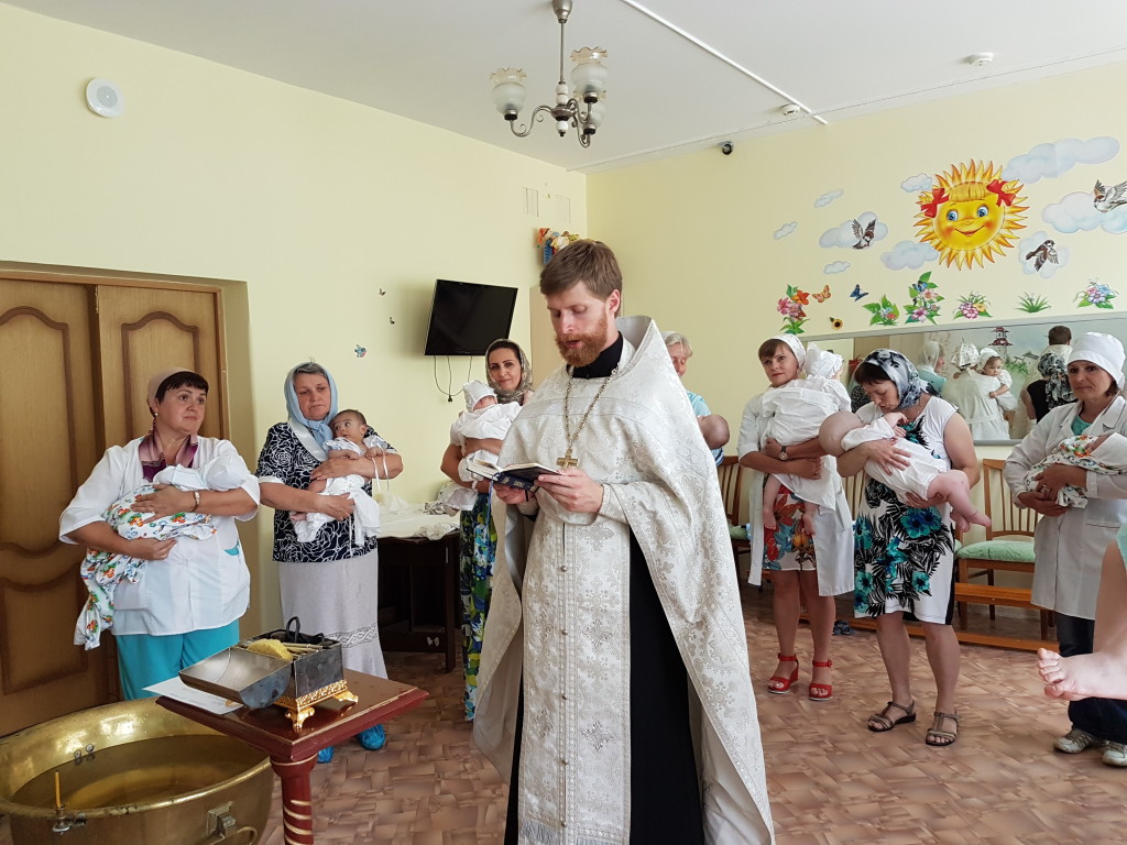 24 июня настоятель Державного храма города Фрязино священник Димитрий Поповский совершил крещение воспитанников Фрязинского специализированного дома ребенка. В этот день таинство приняло 10 ребятишек, а их восприемниками стали сотрудники дома ребенка и прихожане Державного храма.