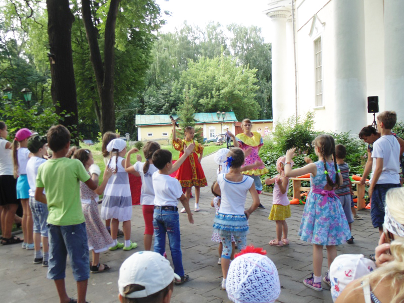 В начале праздника наши верные друзья Глаша и Ульяша пришли, чтобы повеселится вместе с гостями и участниками праздника. После увлекательных конкурсов и эстафет клирик Гребневского храма протоиерей Александр Рождествин рассказал ребятам о жизни и трагедии Царской Семьи, день памяти которой, Церковь праздновала 17 июля. В заключении рассказа Анастасия Самсонова исполнила песню «Прощание с армией» и «Страстотерпцам».