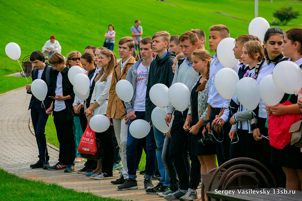Участники митинга выпустили в воздух белые шары, символизирующие души погибших детей.