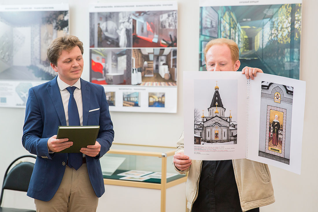 На выставке присутствовали руководитель Администрации Щелковского муниципального района А.В. Валов, глава городского поселения Щелково А.А. Шалыгин, настоятель храма блж. Ксении Петербургской священник Сергий Ковальчук. Отец Сергий выступил с приветственным словом и подарил архитектору книгу, рассказывающую о визите патриарха Кирилла в г. Щелково.