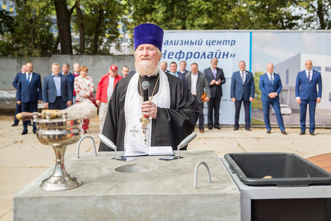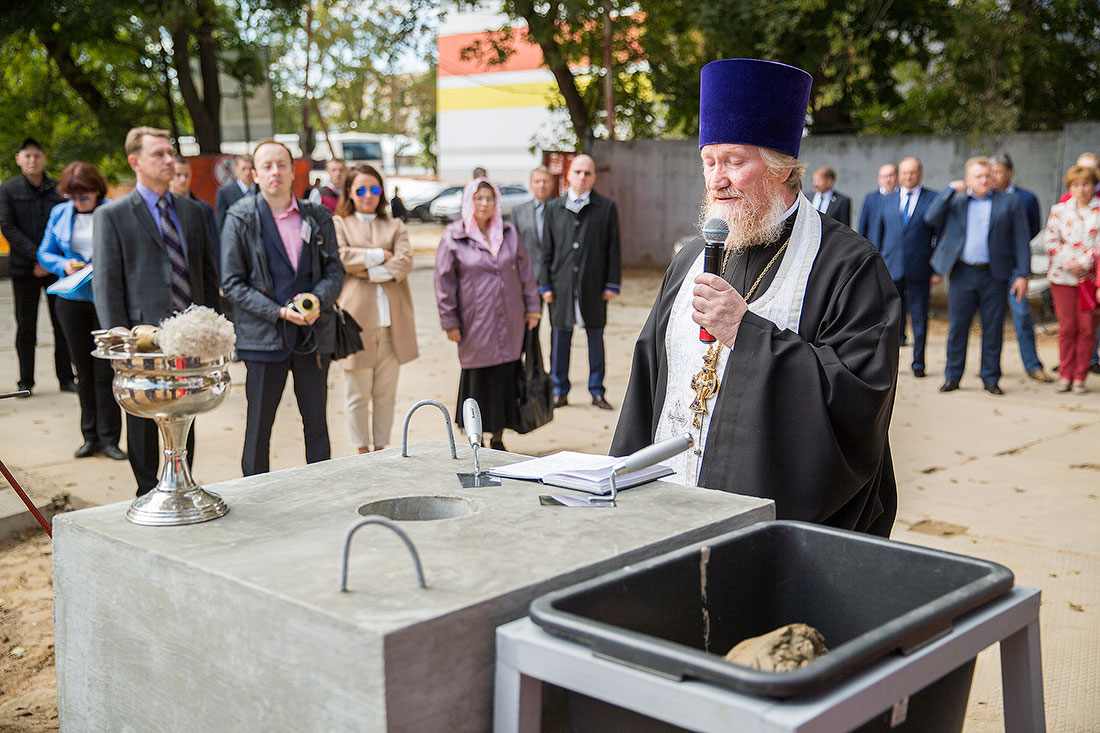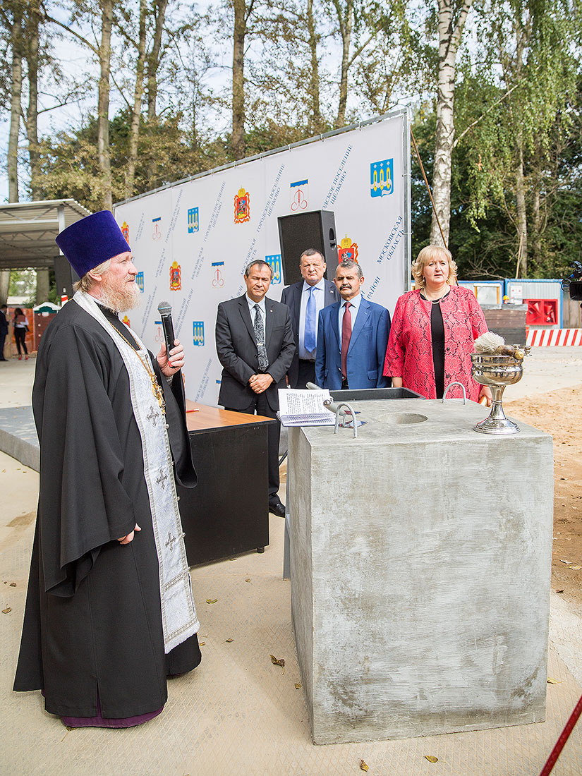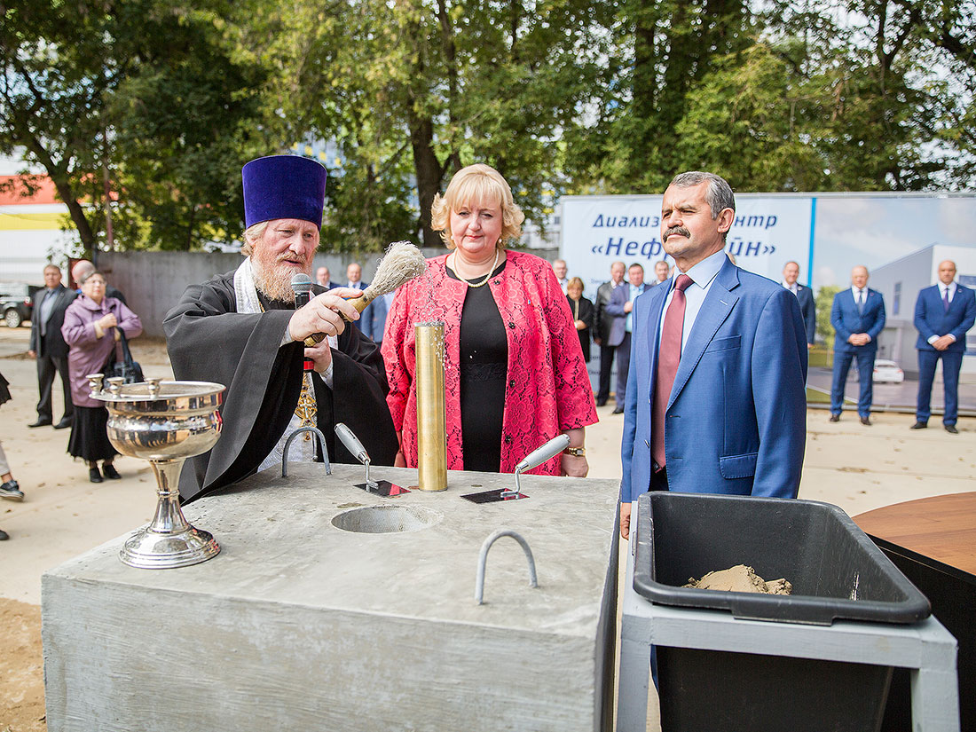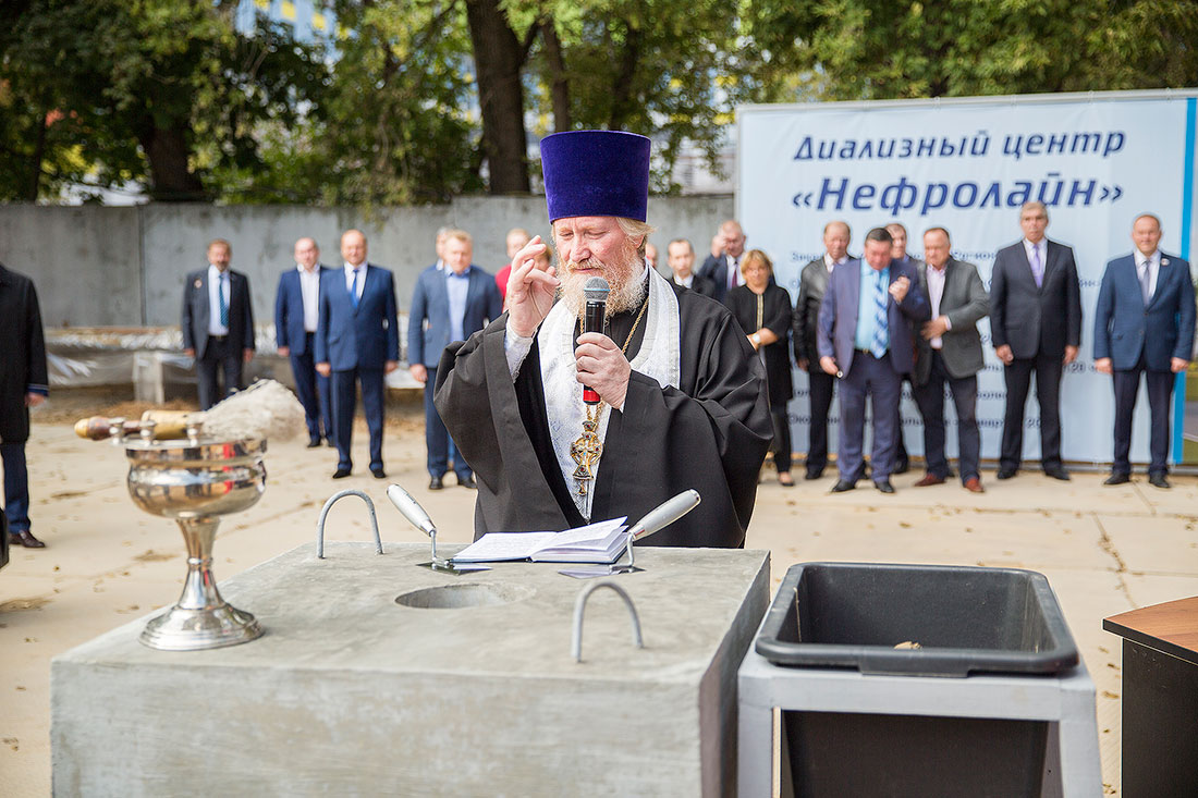 Далее протоиерей Андрей вместе с руководителями Щелковской администрации принял участие в закладке памятной капсулы в фундамент строящегося диализного центра "Нефролайн". Больные с хронической почечной недостаточностью, нуждающиеся в процедуре гемодиализа, из Щелковского района вынуждены ездить на эту процедуру в г. Москву или другие города Московской области. Но вскоре и в г. Щелково на территории 1-й Районной больницы на ул. Краснознаменской начнется строительство местного диализного центра. Отец Андрей совершил чин освящения фундамента будущего медицинского центра.
