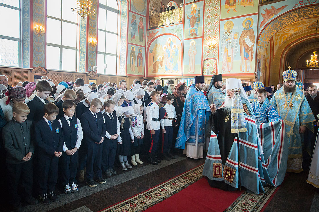 Во время богослужения после чтения Евангелия митрополит Крутицкий и Коломенский Ювеналий произнес проповедь, в которой отметил важность воспитания юного поколения в вере отцов, возвращения утраченных православных традиций.