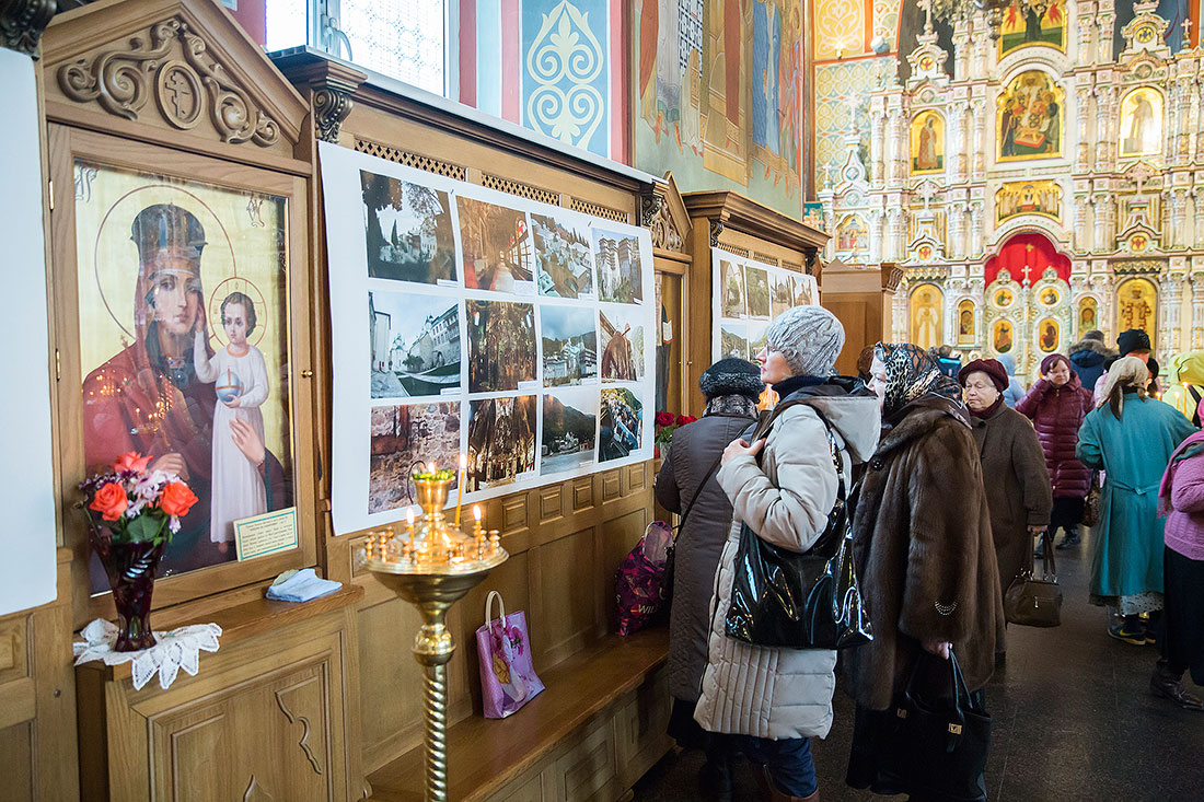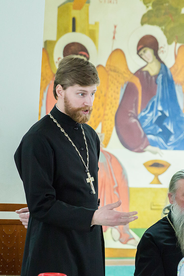 Накануне в храме была развернута фотовыставка, рассказывающая о святынях и монастырях Святой Горы, с большим интересом с ней знакомились духовенство Щелковского благочиния, педагоги и учащиеся православной гимназии «Ковчег», прихожане Троицкого собора города Щелково. Благочинный церквей Щелковского округа протоиерей Андрей Ковальчук представил докладчиков – преподавателя Свято-Тихоновского православного государственного университета, научного сотрудника Московского государственного исторического музея Юлию Борисовну Ткачеву, представителя администрации Щелковского муниципального района Татьяну Валерьевну Кузьмину и кандидата исторических наук, сотрудника Российского государственного архива древних актов Олега Александровича Курбатова. После докладов слушатели задавали вопросы, на которые подробно и интересно отвечали священники и историки.