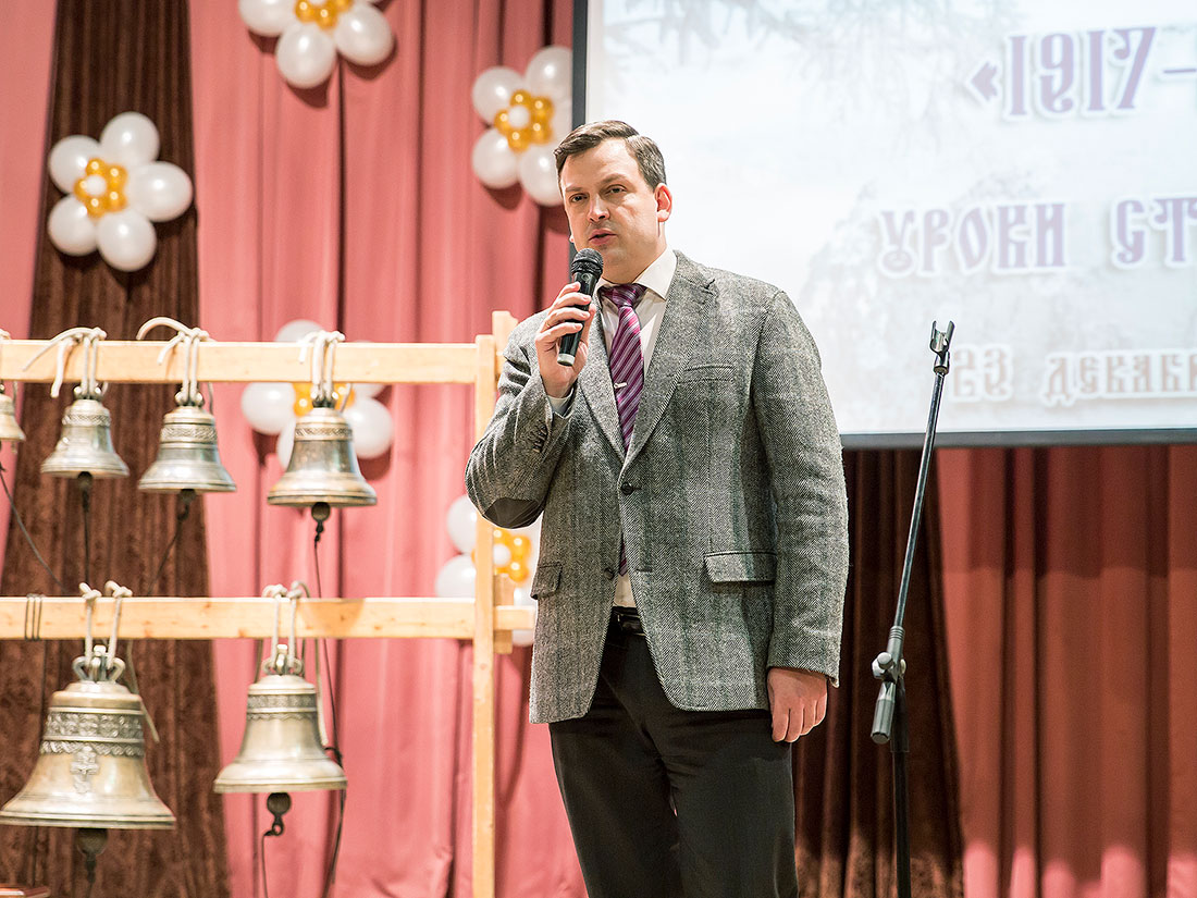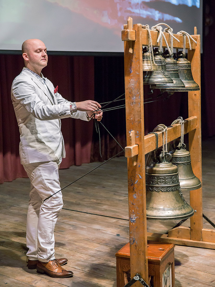 В актовом зале школы выступили детские творческие коллективы, а затем состоялся концерт звонаря Владимира Архангельского, по окончании которого дети стали участниками мастер-класса по колокольному звону.