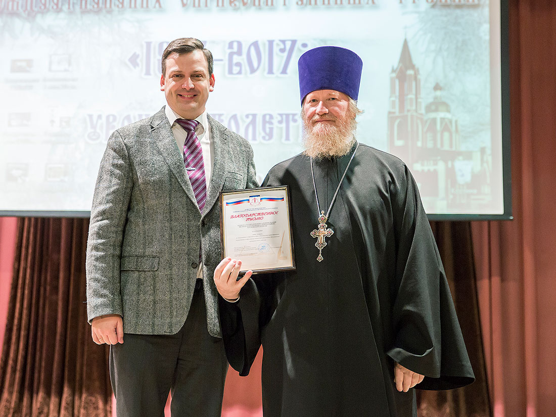 Гавриил Борисович вручил протоиерею Андрею Ковальчуку, священнику Павлу Галушко и священнику Димитрию Поповскому Благодарственные письма Комитета по образованию Администрации Щелковского муниципального района, отметив их большой вклад в духовно-нравственное воспитание и образование подрастающего поколения.