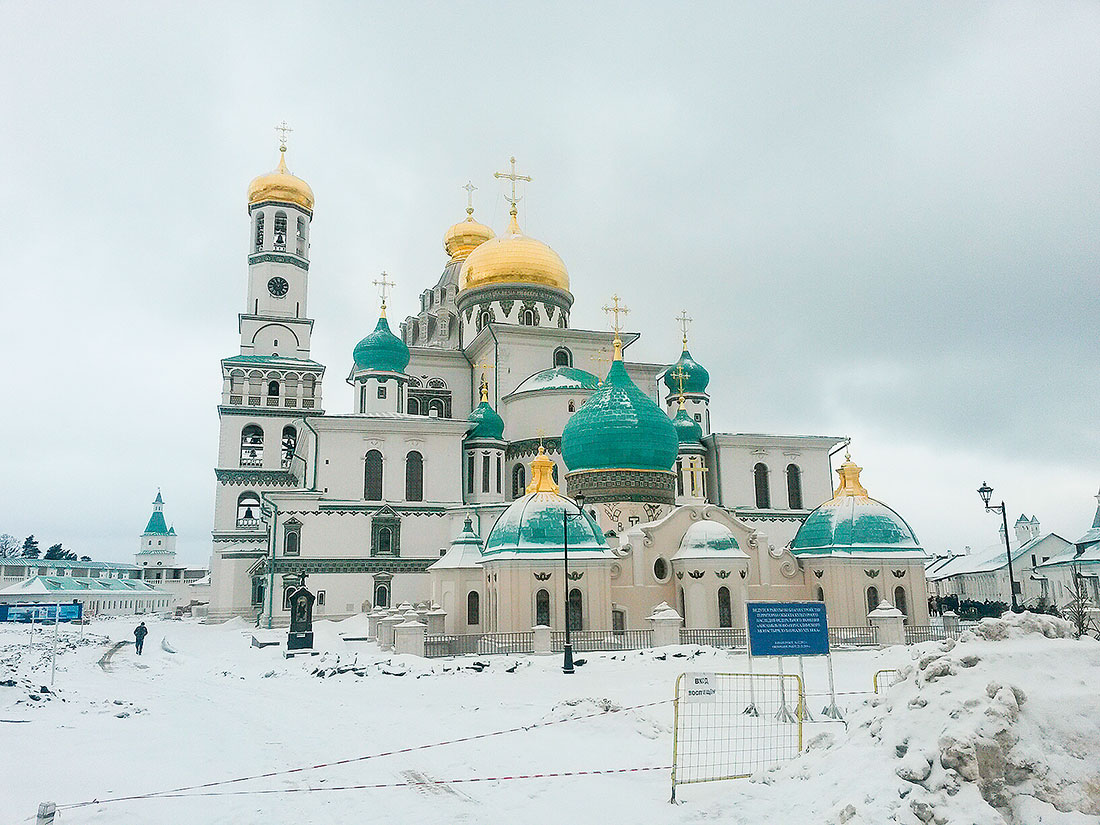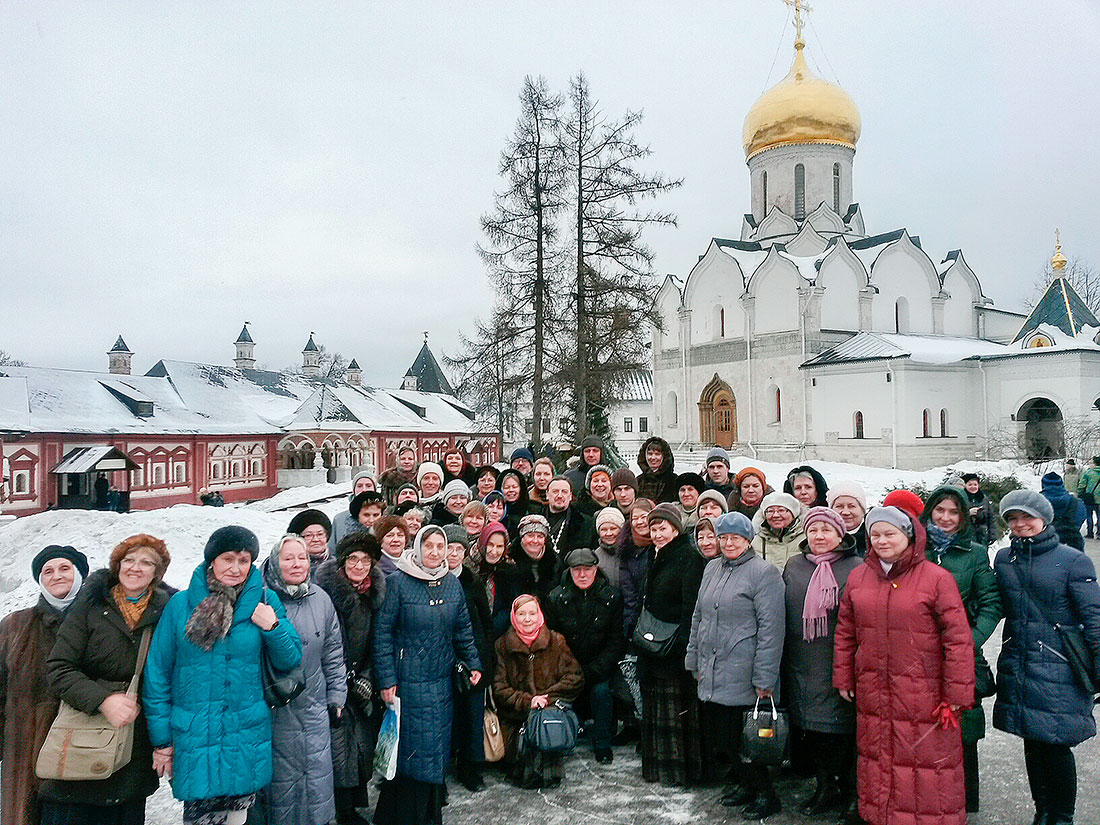 Монастырь основан в 1656 году Патриархом Никоном, по замыслу которого под Москвой был воссоздан комплекс святых мест Палестины. Реставрационные работы закончены в 2016 году и взору паломников храм Воскресения Господня предстал во всем своем великолепии. Поблагодарив экскурсовода, в течение полутора часов подробно познакомившего паломников со святынями монастыря, группа направилась в город Зеленоград, в Саввино-Сторожевский монастырь. Здесь побывали в трех храмах монастыря и приложились к мощам св. Саввы Сторожевского в Богородицерождественском храме обители.