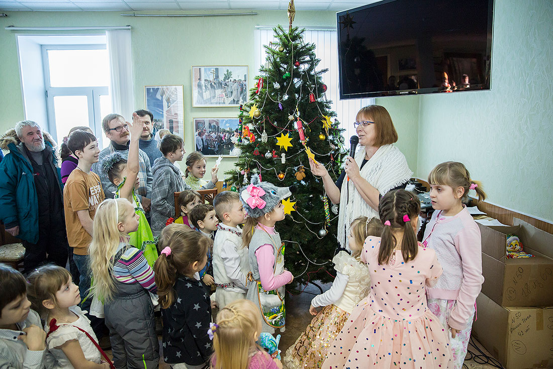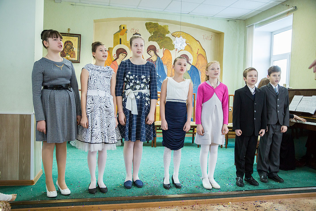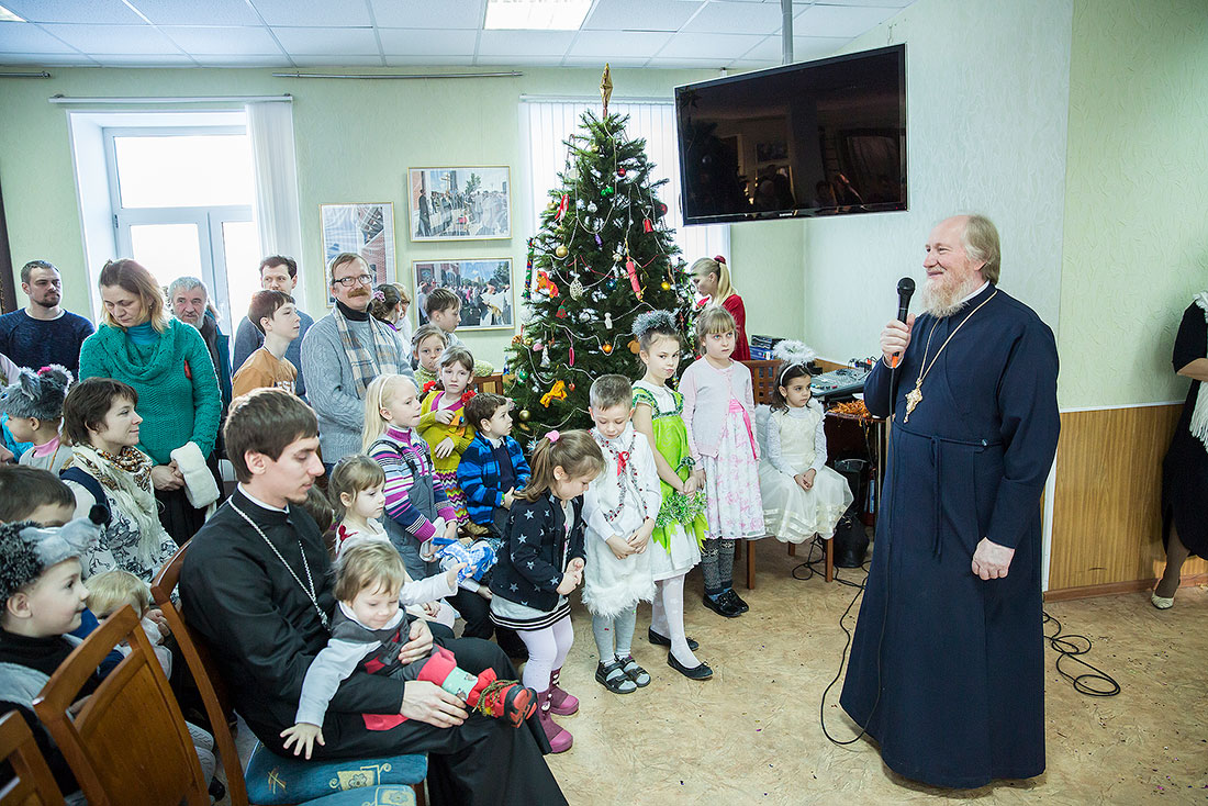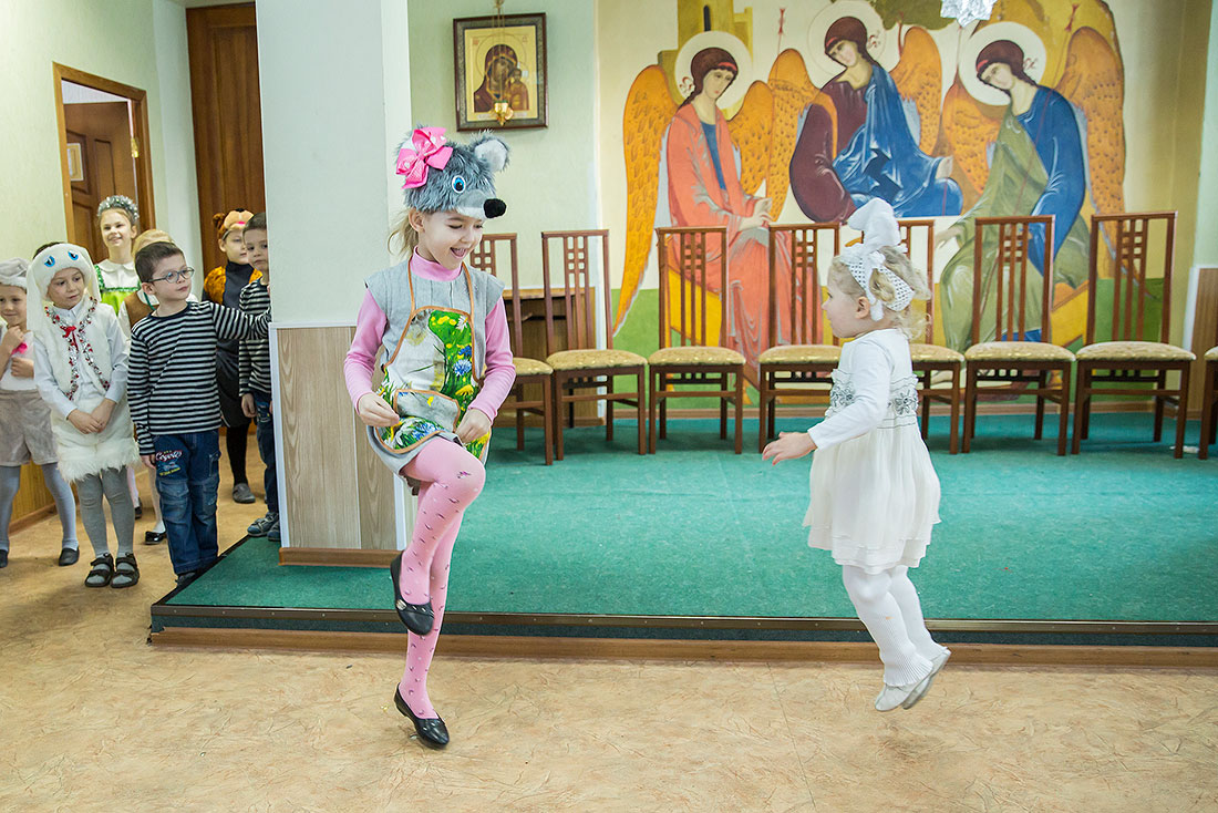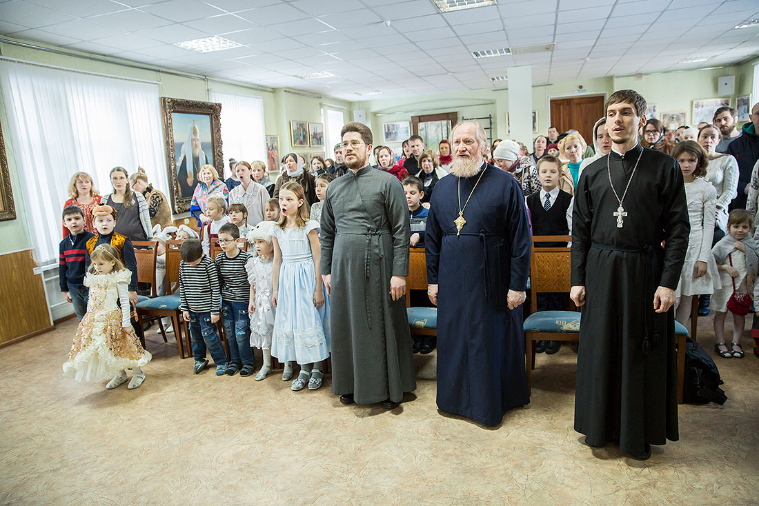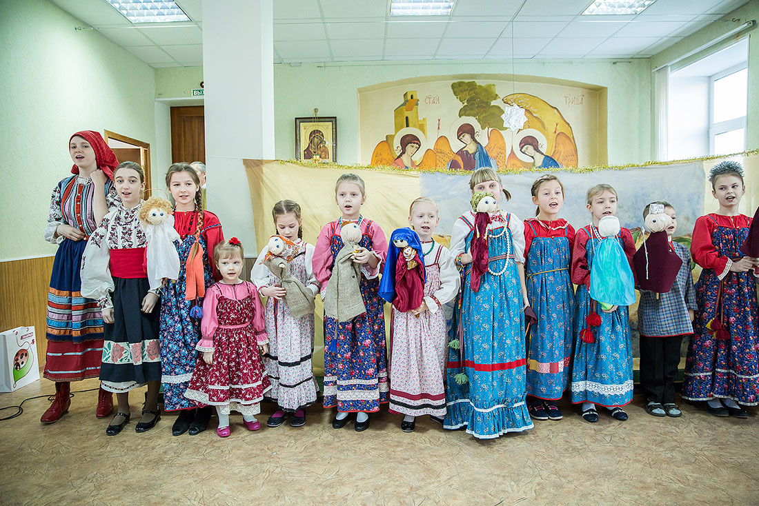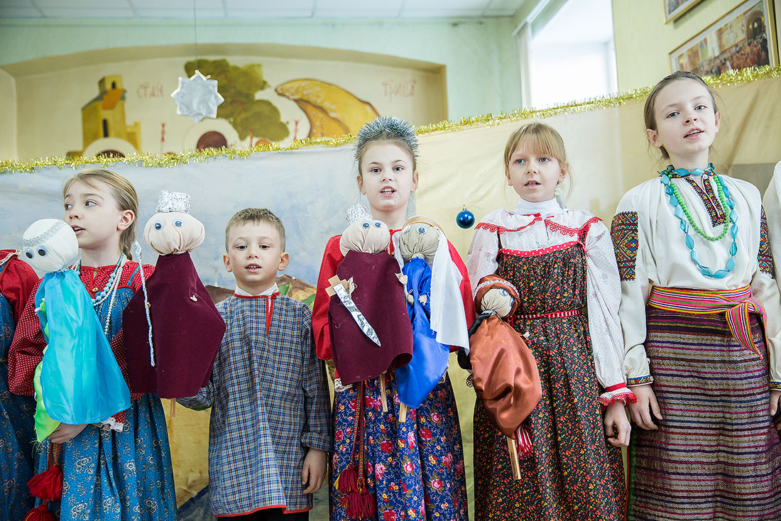 Многие ребята в этот день причащаются Святых Христовых Таин, а затем, переодевшись в нарядные костюмы, становятся участниками праздничного выступления. Они читают стихи, поют песни и показывают театрализованные постановки. Вот и сегодня, несмотря на крепчайший мороз, в конференц-зале Троицкого собора собрался полный зал.