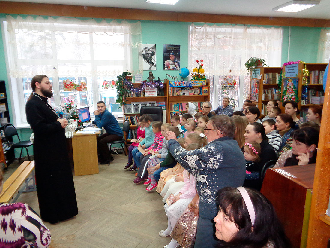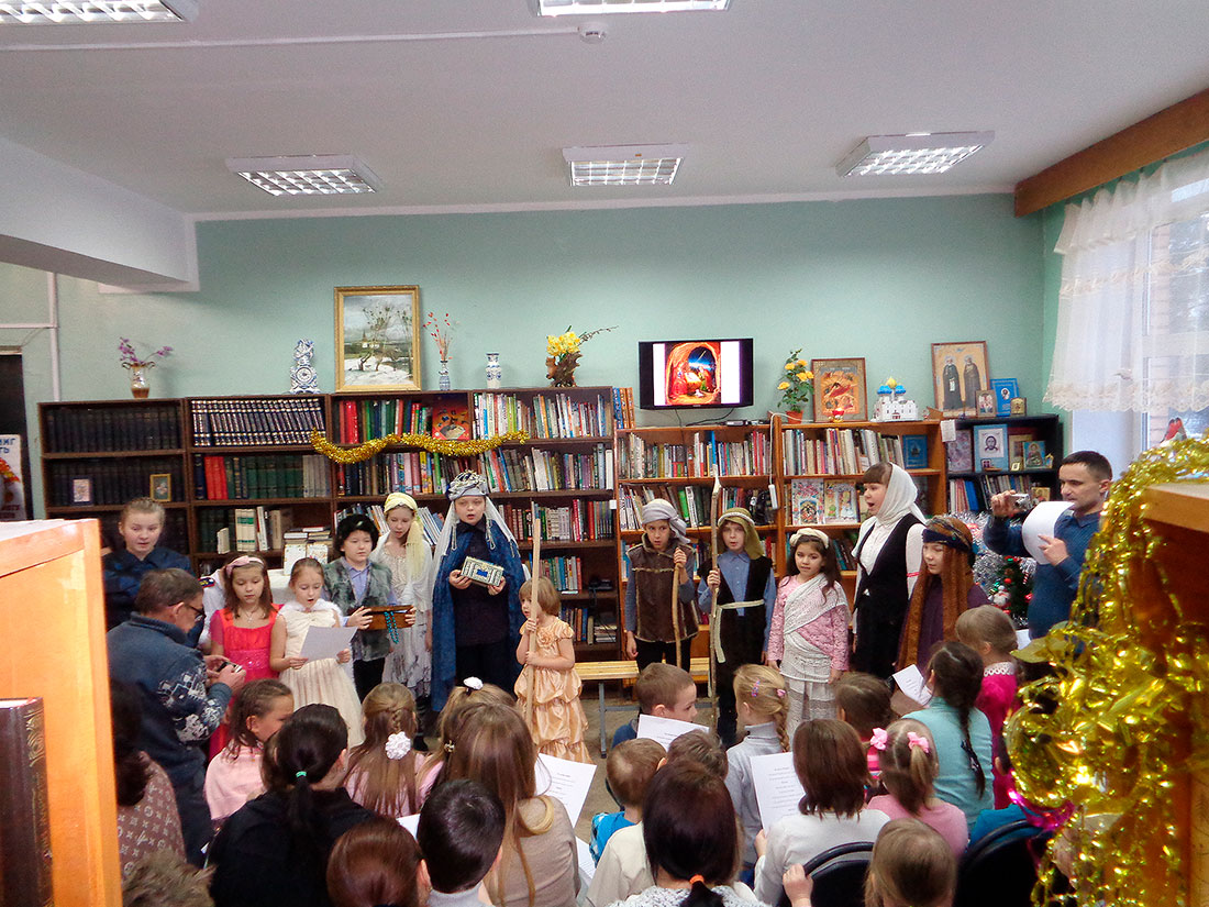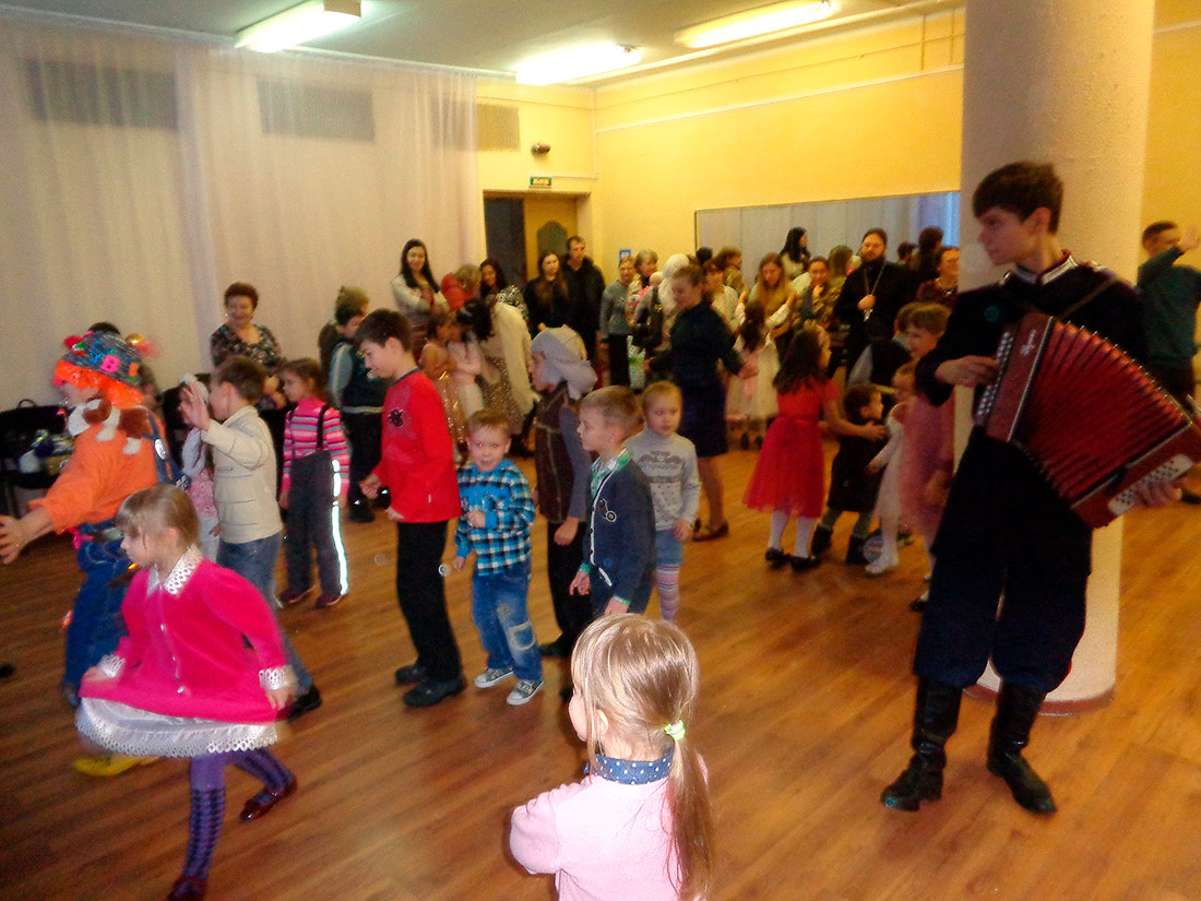 В Доме культуры им. В.П.Чкалова собрались учащиеся воскресной школы и дети прихожан. Открыл праздник клирик храма священник Кирилл Догадаев. Был показан небольшой Рождественский спектакль, дети читали стихи, славили песнями Родившегося Богомладенца. После представления дети приняли участие в играх у елки и получили подарки и поздравления от Деда Мороза.