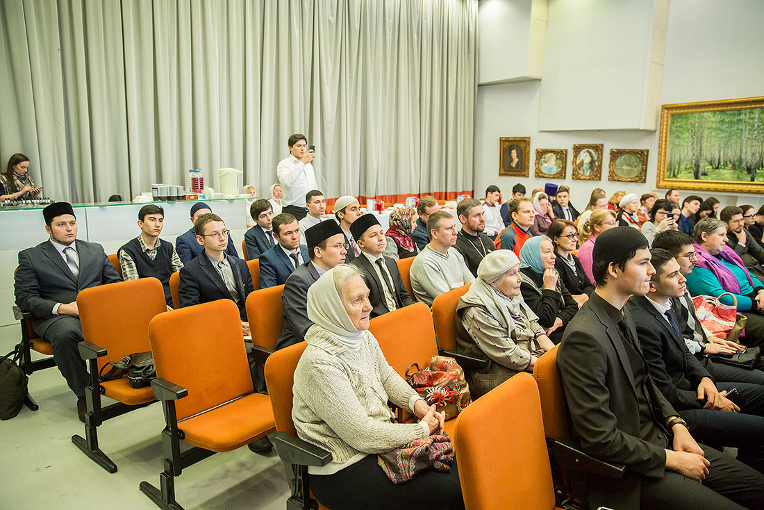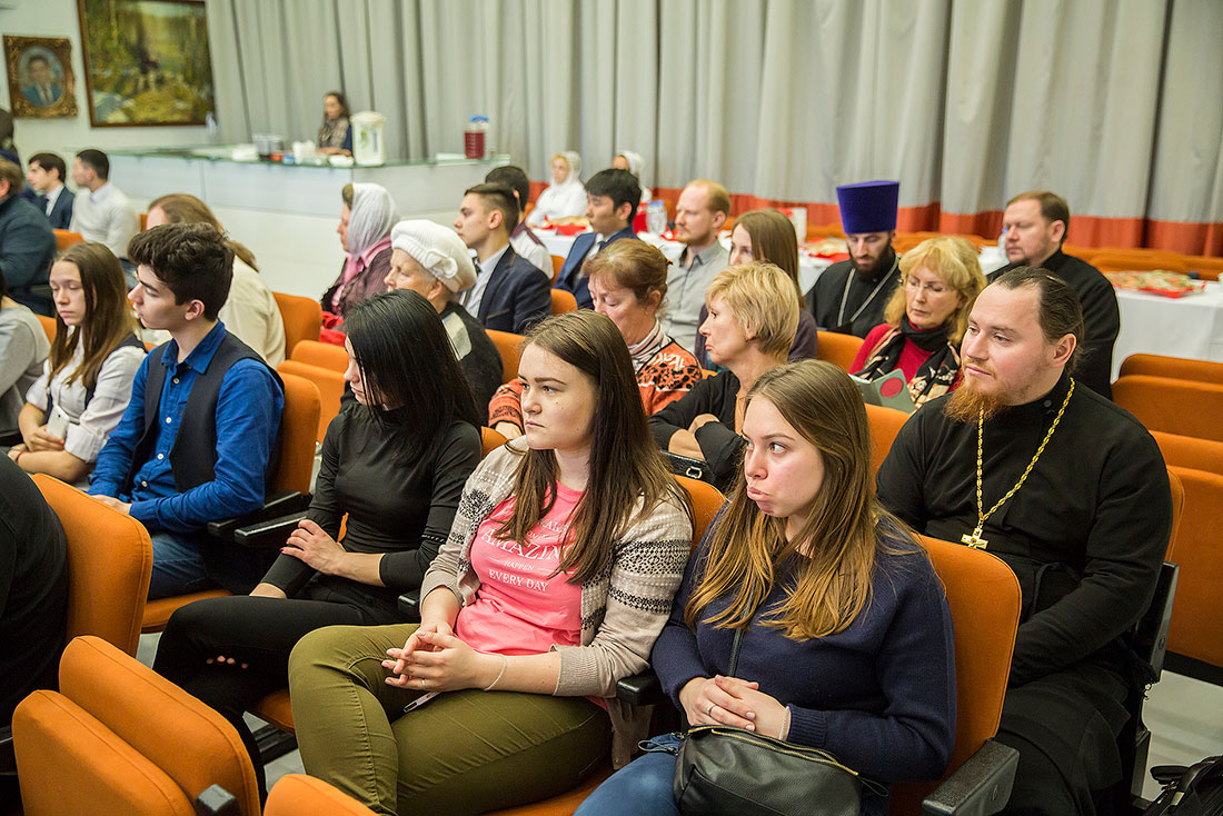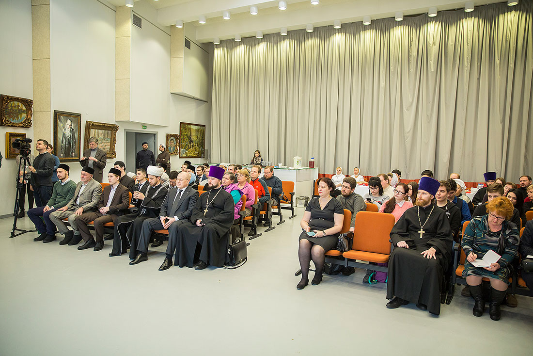 С вступительным словом к собравшимся обратился священник Димитрий Березин, который отметил, что многовековая история России свидетельствует о том, что в нашей стране умеют сохранять мир и взаимное уважение между религиями и народами. При этом Русская Православная Церковь не только декларирует терпимое и уважительное отношение к верующим других религий, но и на деле заботится о мирном и добром сосуществовании, уважая свободу каждого человека на выбор его вероисповедания. Повышению уровня веротерпимости в нашем обществе могло бы способствовать большее узнавание друг друга. «Мы могли бы знакомить друг друга со святыми и праведными людьми, представителями веры, – продолжил о. Димитрий. – Ведь по плодам веры часто судят о ней самой. Есть множество людей: исторических личностей, и наших современников, кто черпал силы и жил по законам своей веры, кто мог бы быть примером для представителей любой религии».