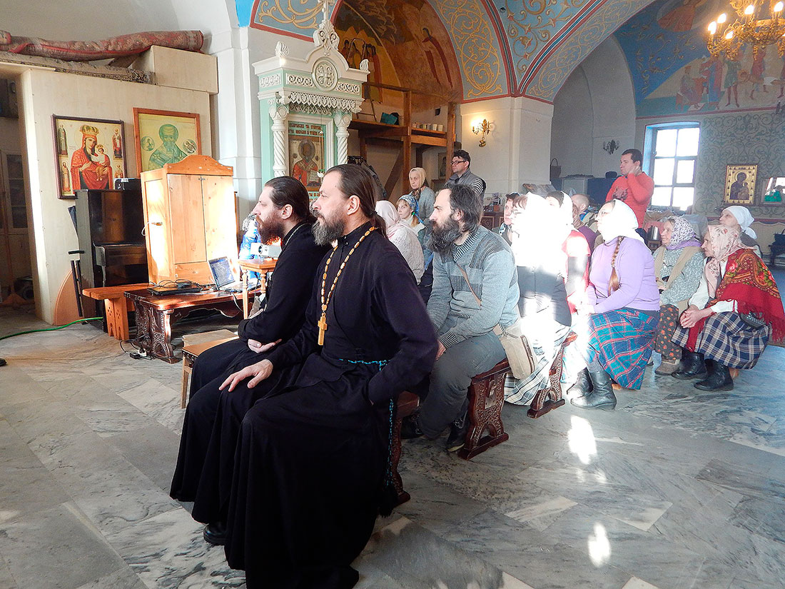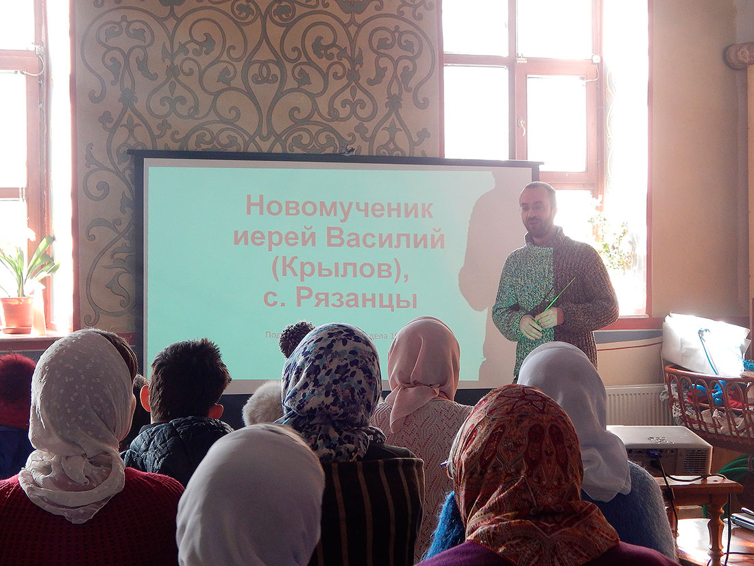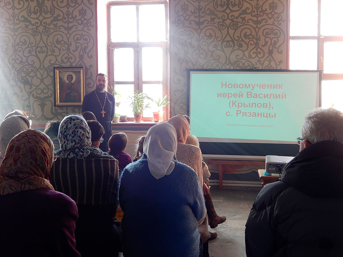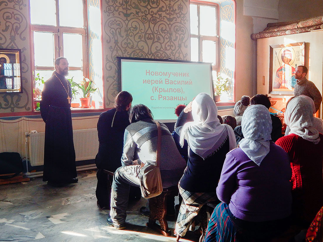 Открыл беседу настоятель Сергиевского храма с. Трубино священник Антоний Сенько, он рассказал о жизни и о подвиге веры Щелковских новомучеников. Алтарник храма, выпускник ПСТГУ, учитель истории МБОУ СОШ № 16 Щелковского муниципального района Т.А. Балыко сделал доклад о священномученике Василии (Крылове). В докладе были использованы архивные материалы, представленные в виде презентации, цитаты из материалов следственного дела, зачитаны воспоминания прихожан об отце Василии. Закончилась беседа общением участников, которые отметили значение подвига новомучеников и исповедников Церкви Русской для проповеди Евангелия.