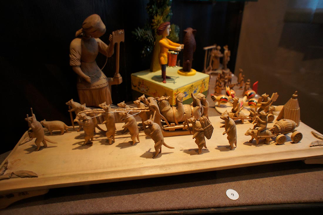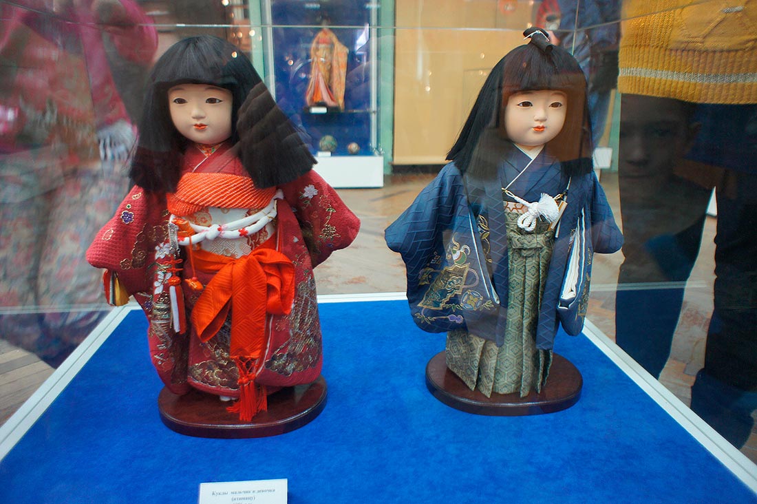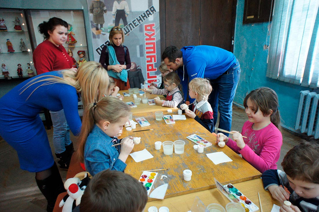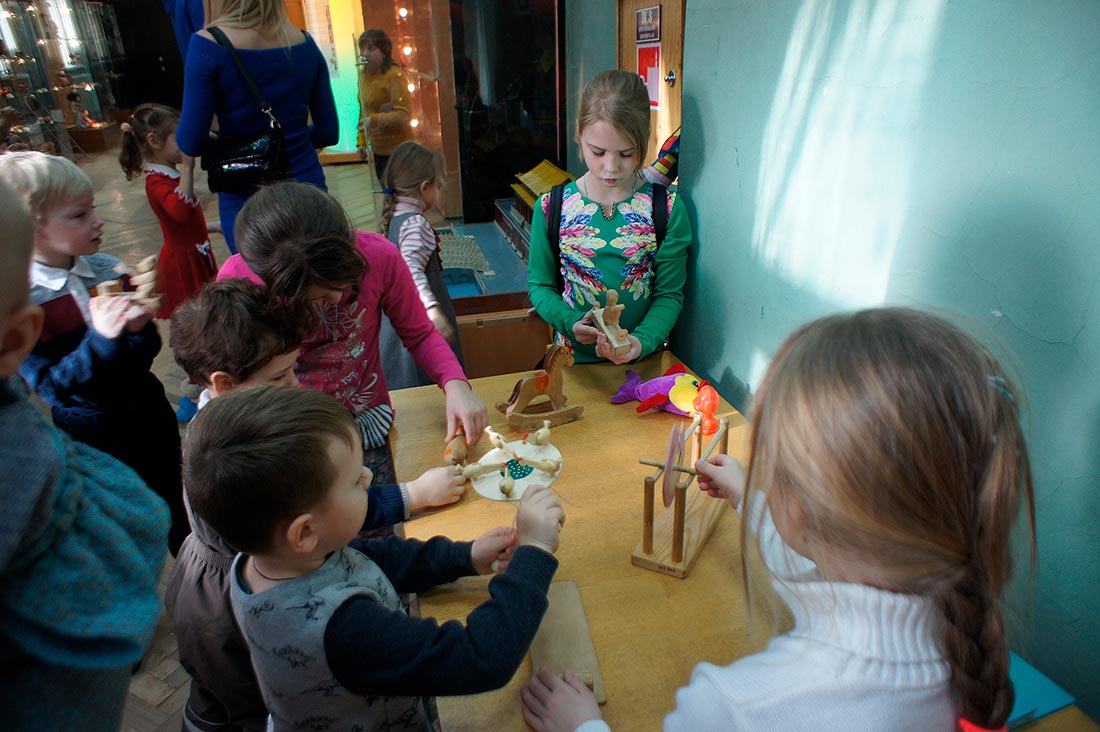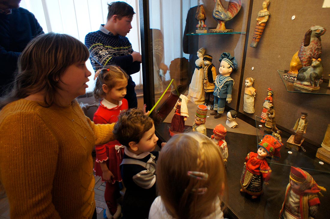 Ребята увидели коллекции русской и японской народной игрушки. Это куклы-пеленашки, деревянные лошадки, нарядные дымковские и филимоновские глиняные фигурки, и конечно, русская матрёшка - символ города. В музее хранится одна из первых российских матрёшек, которой уже больше 100 лет. Детям очень понравились игрушки из дерева, папье-маше. Ребята узнали историю появления куклы и других игрушек. Родителей же не оставила равнодушной встреча с любимыми, добрыми друзьями детства - игрушками советского периода. Дети также познакомились с аристократической, дворянской игрушкой, представленной на выставке игрушками детей последнего российского императора Николая II. Большое впечатление произвела коллекция игрушек наследника цесаревича Алексея. Это модели паровозов, пароходов, автомобилей, аэропланов. Познакомили ребят и с детской культурой Японии. Детям рассказали о быте и традициях этой страны. Затем экскурсантам был показан кукольный спектакль «Проделки проказников» в театральной студии им. Бартрама, находящейся здесь же в музее. Завершилась экскурсия мастер-классом «Роспись деревянной игрушки».