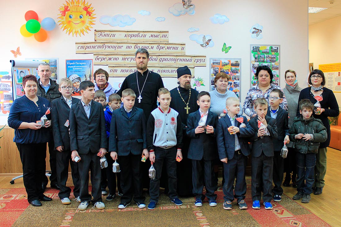 21 апреля настоятель Сергиевского храма д. Алмазово священник Илия Плешаков и клирик храма священник Кирилл Серышев посетили ГКОУ МО «Доверие» коррекционную школу-интернат. Батюшек сопровождали прихожане и певчие храма. Воспитанников интерната поздравили с Воскресением Христовым. Певчие пропели пасхальные песнопения. Воспитанникам школы подарили пасхальные подарки.