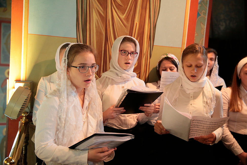 Богослужебные песнопения исполняли хор духовенства Московской епархии под управлением священника Сергия Голева и детский хор Щелковского благочиния под руководством Анны Медведевой.