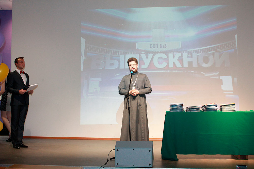 В празднике принял участие клирик Троицкого собора г. Щелково священник Дмитрий Третьяков. Он обратился к выпускникам с приветственным словом и пожелал выпускникам не останавливаться на достигнутом. Праздник получился ярким и волнительным для всех: выпускников, их родителей, педагогов. С благодарностью ребята вручили цветы администрации и своим преподавателям. От выпускников прошлых лет выступила с песней и поздравлением Екатерина Гладких. Виновников торжества также поздравили первокурсники ОСП № 3 и студенты ОСП № 4.