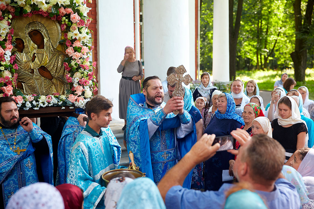 Божественную литургию совершил настоятель священник Иоанн Солнцев в сослужении клириков храма. После крестного хода с образом Гребневской иконы Божией Матери и молебном перед этой почитаемой святыней, отец Иоанн обратился к прихожанам, гостям и жителям поселения со словами поздравления.
