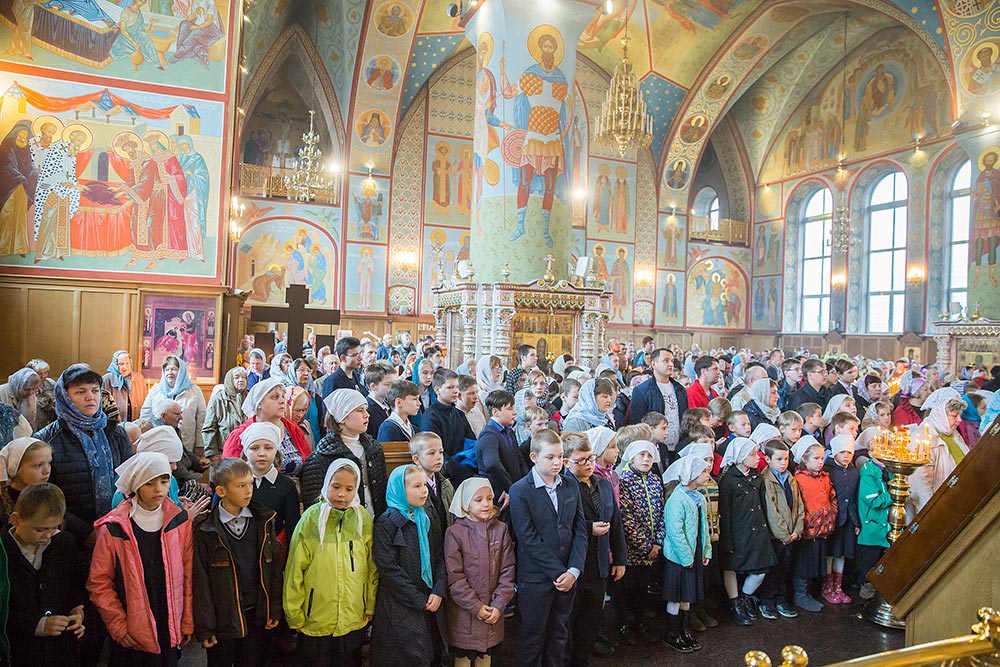 За богослужением молились учащиеся православной гимназии "Ковчег", многие из которых в этот день причастились Святых Христовых Таин.