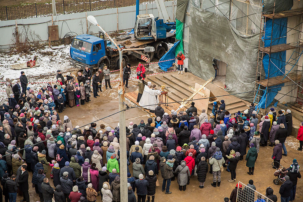 В этот день на строительную площадку храма пришли сотни верующих фрязинцев, среди которых был и главный меценат строительства президент ООО «Гранд» Г.В. Агекян.