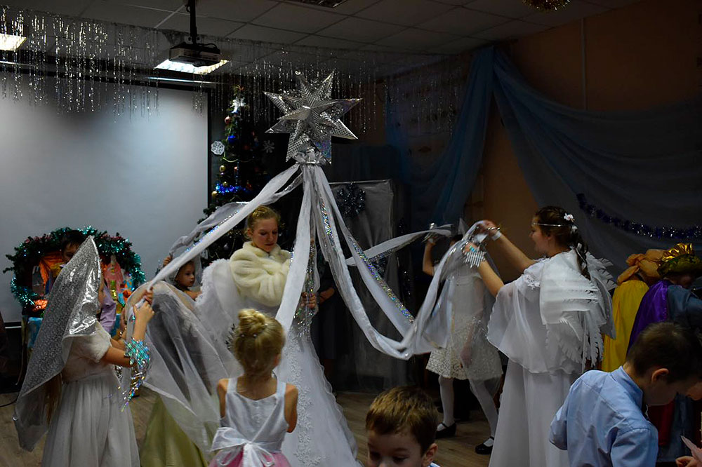 Праздник начался с пения тропаря Рождеству Христову. Открыла праздничную программу младшая группа воскресной школы, выступившая со стихами и песнями, из которых особенно понравилась зрителям песня с бубенцами.