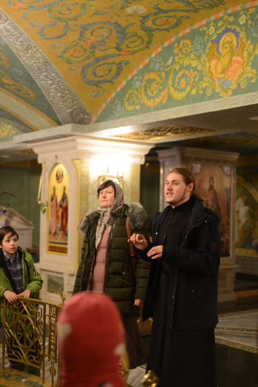 Паломничество началось с литургии, которая совершалась в новом соборе в честь новомучеников и исповедников Русской Православной Церкви. Огромный храм с прекрасными иконами, фресками в необычном цветовом решении и богатым убранством просто поразил детей и взрослых! Чинное церковное богослужение и великолепное пение хора Сретенского монастыря оставили неизгладимое впечатление в сердцах молящихся. За литургией почти все паломники причастились Святых Христовых Тайн.