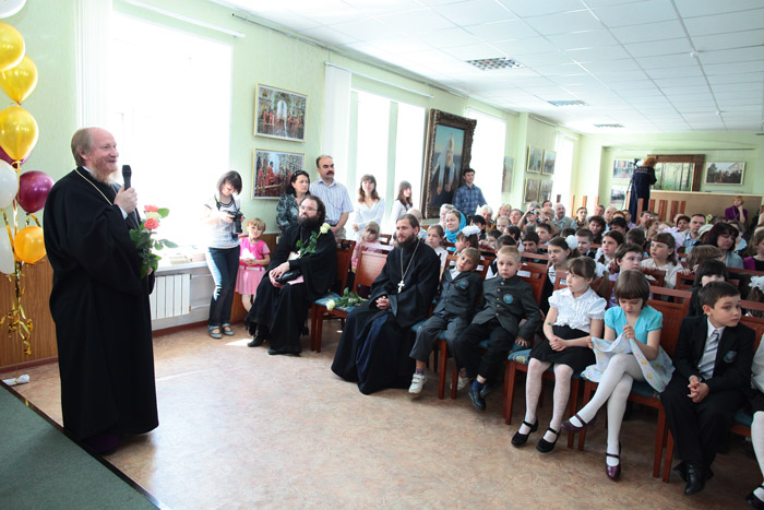 Напутственные, добрые слова услышали выпускники в этот день, им желали удач, сил, смелости и знаний в предстоящих экзаменах. Слова благодарности звучали в адрес учителей, классных руководителей, священников, которые все эти годы учили и воспитывали ребят. К гимназистам обратился благочинный церквей Щелковского округа протоиерей Андрей Ковальчук: «Сегодня трогательный день, вы услышали свой последний звонок. Но мы видим и радуемся тому, что вы стали взрослыми людьми, которые умеют дружить, быть отзывчивыми и добрыми юношами и девушками. Не забывайте гимназию, не забывайте свой храм, свой приход. Божией помощи вам во всех ваших делах». Каждому выпускнику был вручен памятный подарок – фотоальбом, рассказывающий о Первосвятительском визите Патриарха Московского и всея Руси Кирилла в Щелково. Гимназисты получили почетные грамоты, а родители – благодарственные письма от администрации и духовенства гимназии.